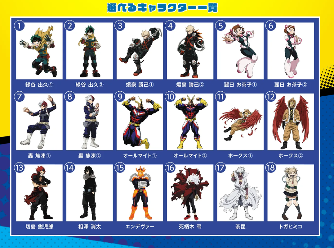 ▼ 由左至右為 : 綠谷出久、爆豪勝已、麗日御茶子、轟焦凍、歐爾麥特與霍克斯。