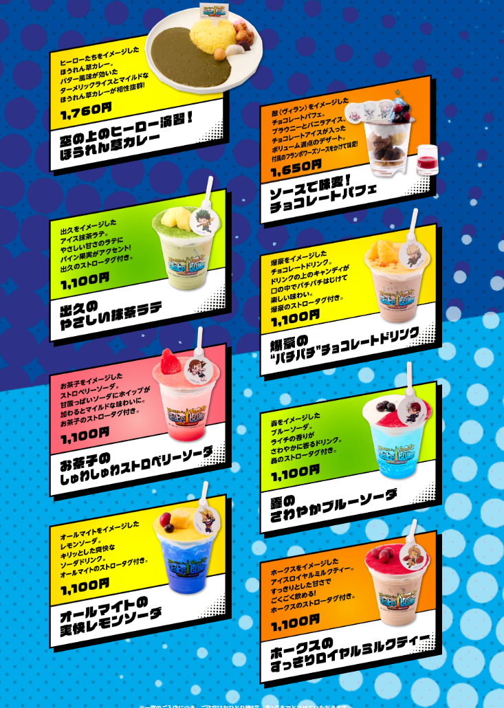 以所有《我的英雄學院》動畫中各角色的名場面與台詞結合佈置在外牆上,讓你可以回味劇情並沉浸故事之中。