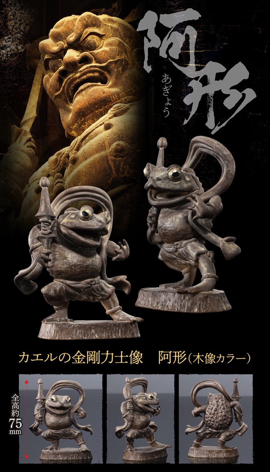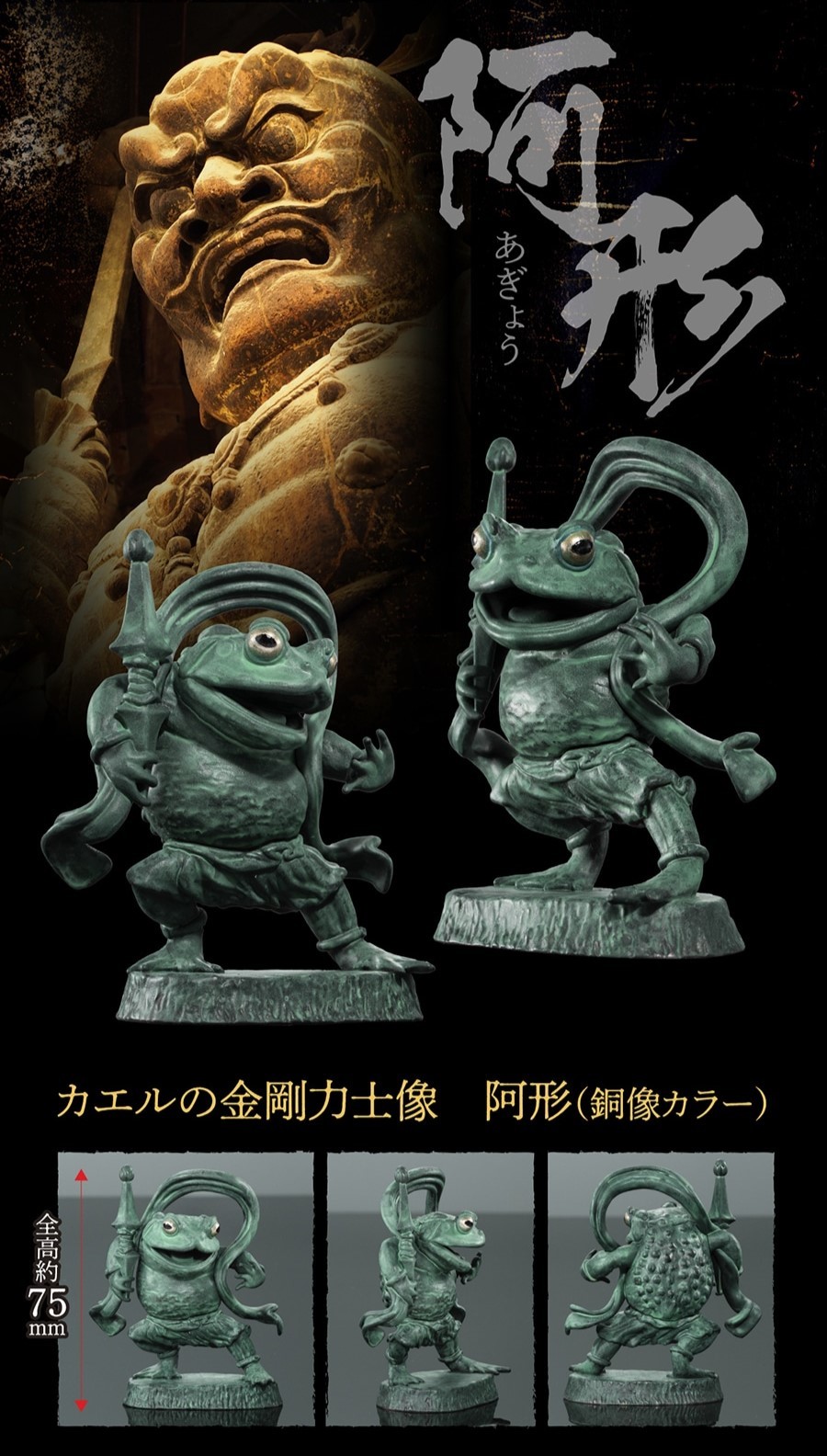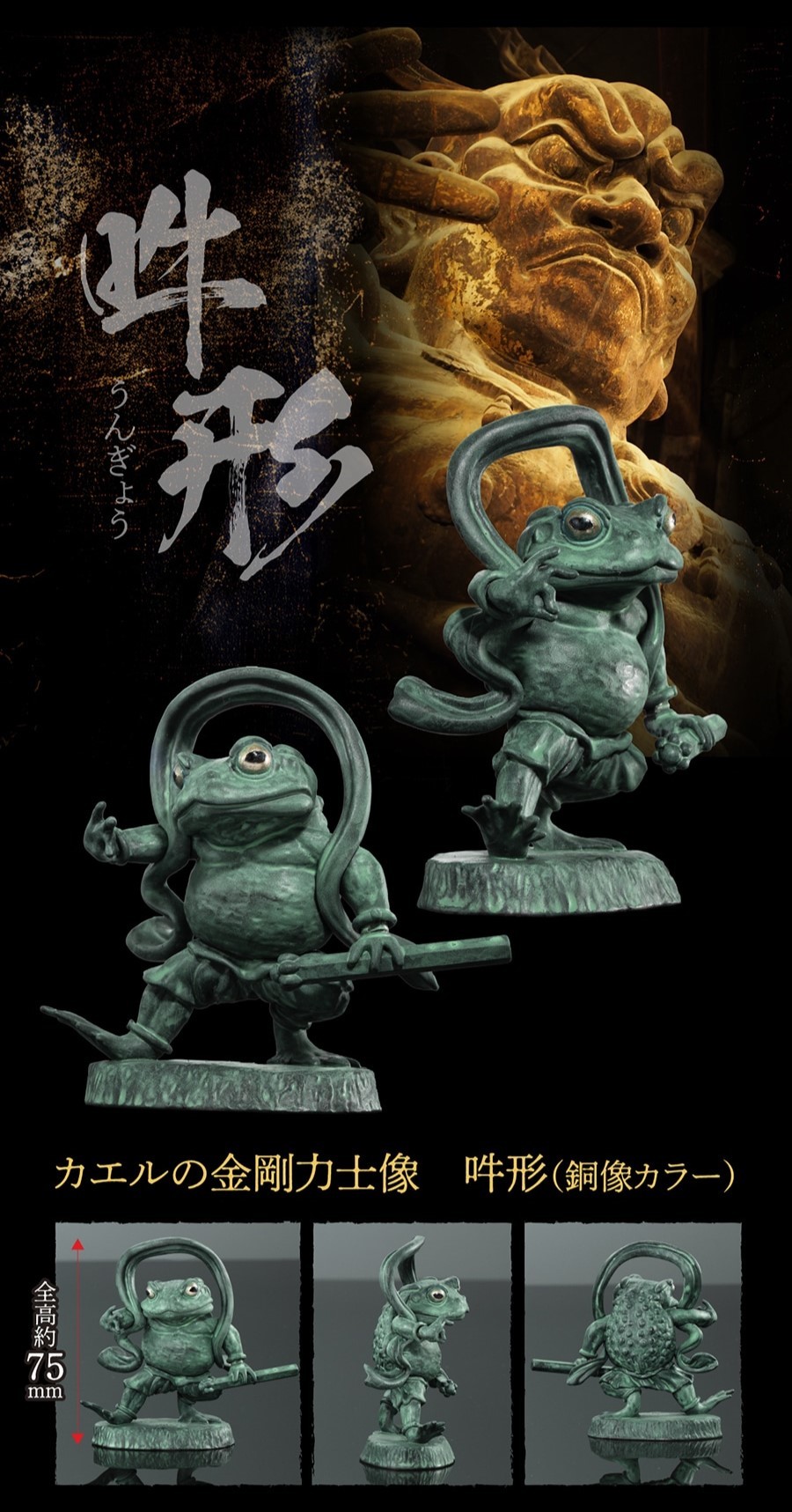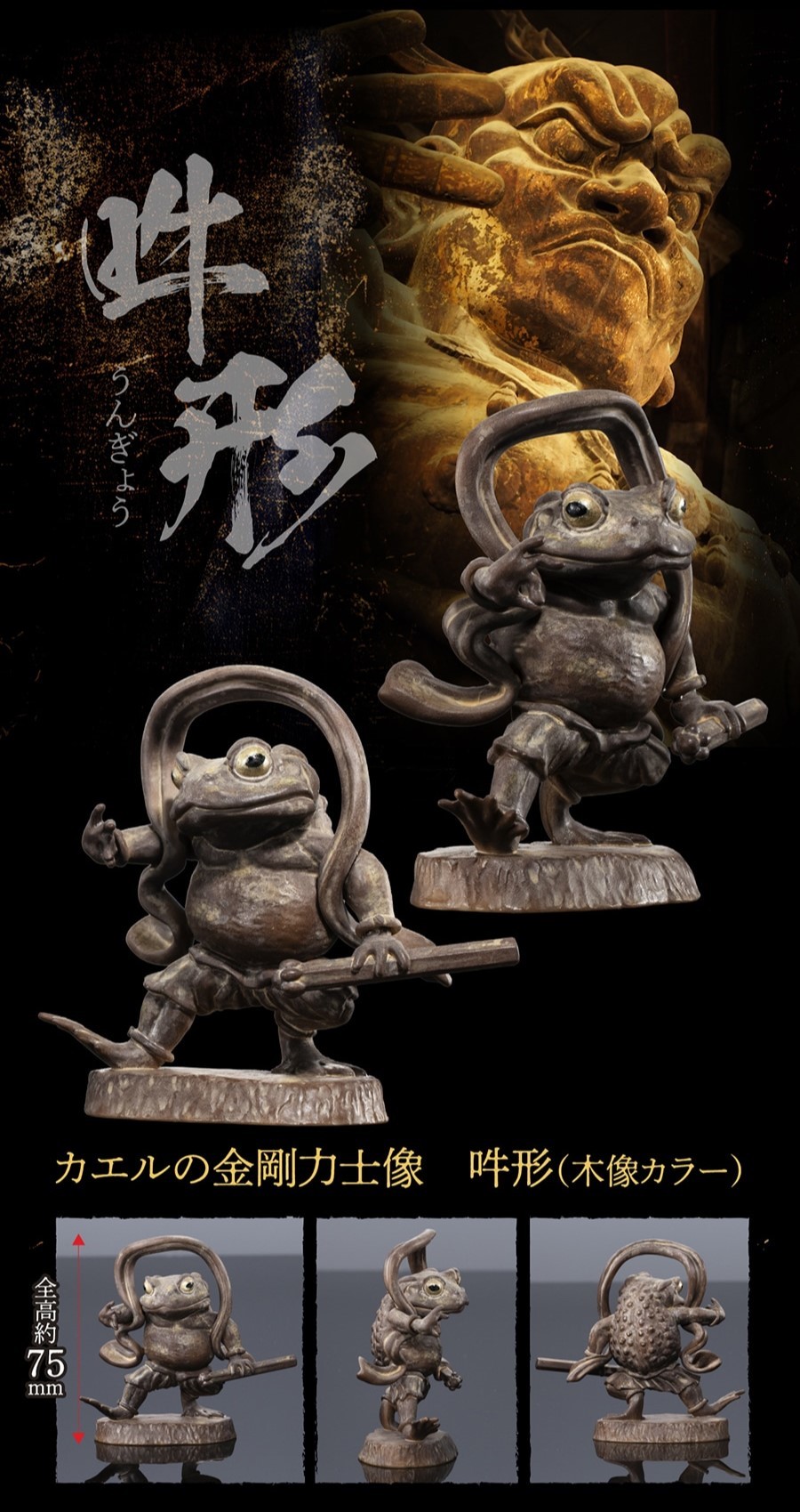 「Art in Gashapon 青蛙的金剛力士像」轉蛋,將爬蟲兩棲類學研究博士 Kazutaso Company 創作的『蛙×佛像(カエル×仏像)』系列作品以 8 公分的轉蛋尺寸立體化!在青蛙的造型中結合佛教的左右護法神-執金剛神(金剛力士),收錄有金剛力士像阿形與吽形,刻劃出青蛙皮膚粗糙的小疙瘩、炯炯有神的大眼與細膩的手飾等細節,並有施以不同質感塗裝的木像、銅像兩種配色,營造出不凡的氣勢與威嚴!