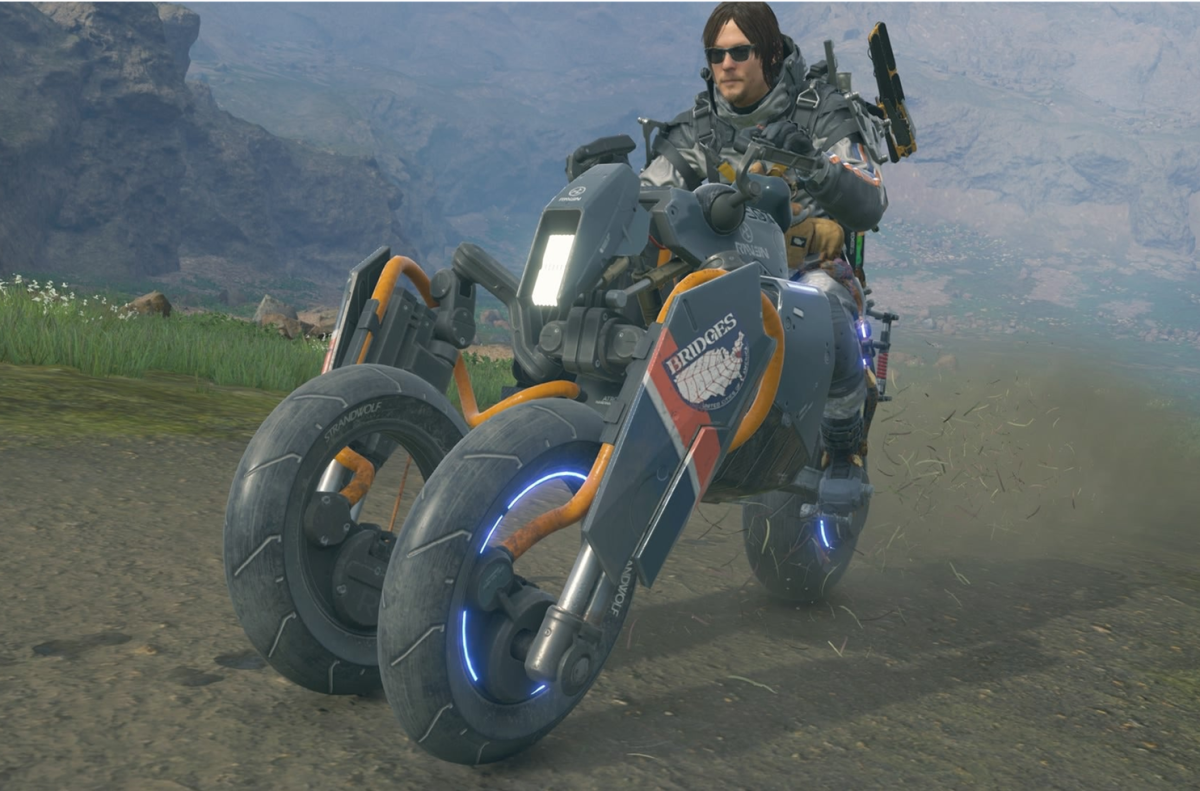 遊戲《死亡擱淺》中,主角 Sam Porter Bridges ( 山姆·波特·布橋斯 ) 駕駛的「倒三輪摩托車」是一輛前兩輪、後一輪的獨特載具,能在崎嶇不平的路面上順暢行駛,對玩家的冒險提供極大協助。
