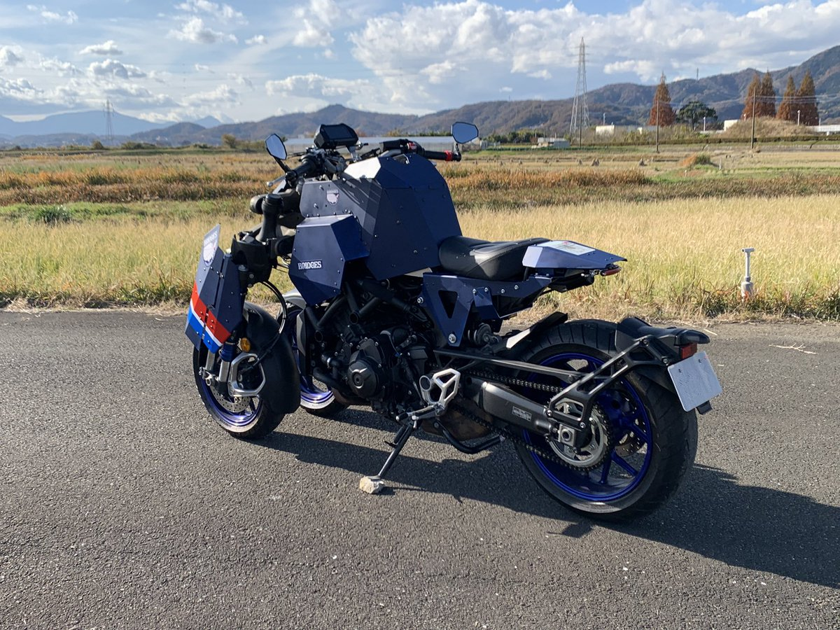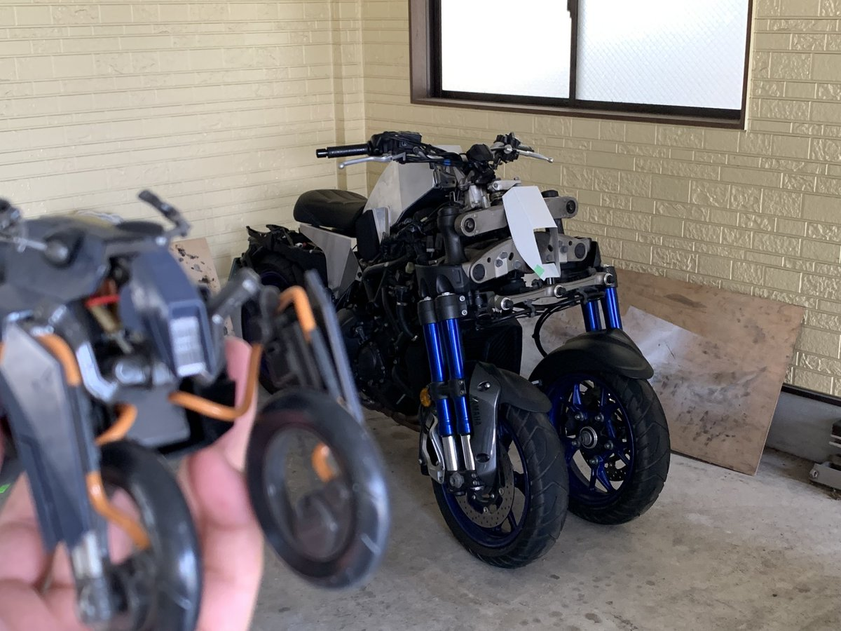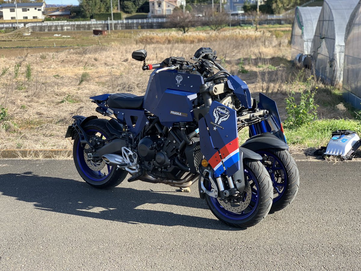 這輛改裝機車的基礎車款,是 Yamaha「NIKEN GT」,與遊戲中的反向三輪一樣,同樣採用「前兩輪、後一輪」的設計風格。
