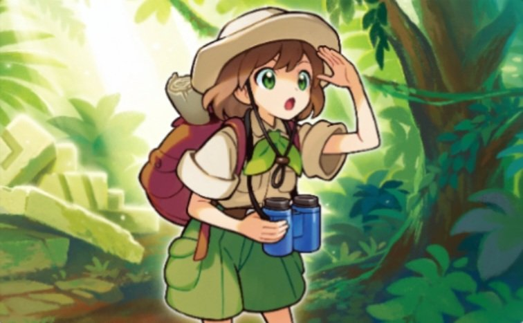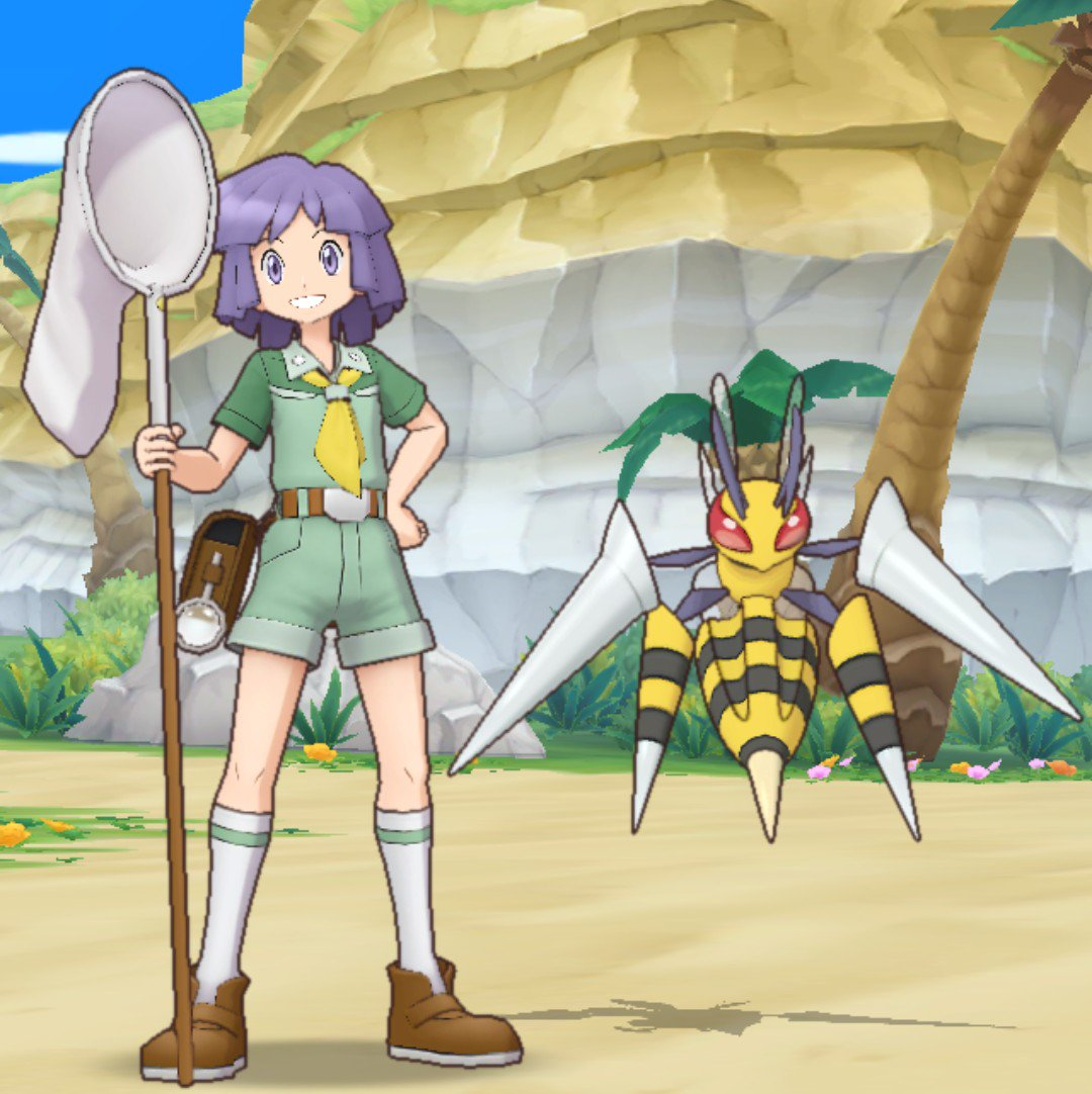 除了二星卡外,還有普卡的插圖,老實說只從圖片難以直接判斷到底性別為何。尤其看起來又是一個鮑伯頭造型,加上童軍服裝,各位應該很容易聯想到《寶可夢系列》城都地區蟲系道館館主阿筆(ツクシ),也是類似的造型,不過阿筆是男生唷 !