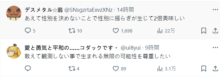 不過不少網友認為,不需要確認性別,這樣就有無限的可能性,才讓人感覺到美味阿 www。