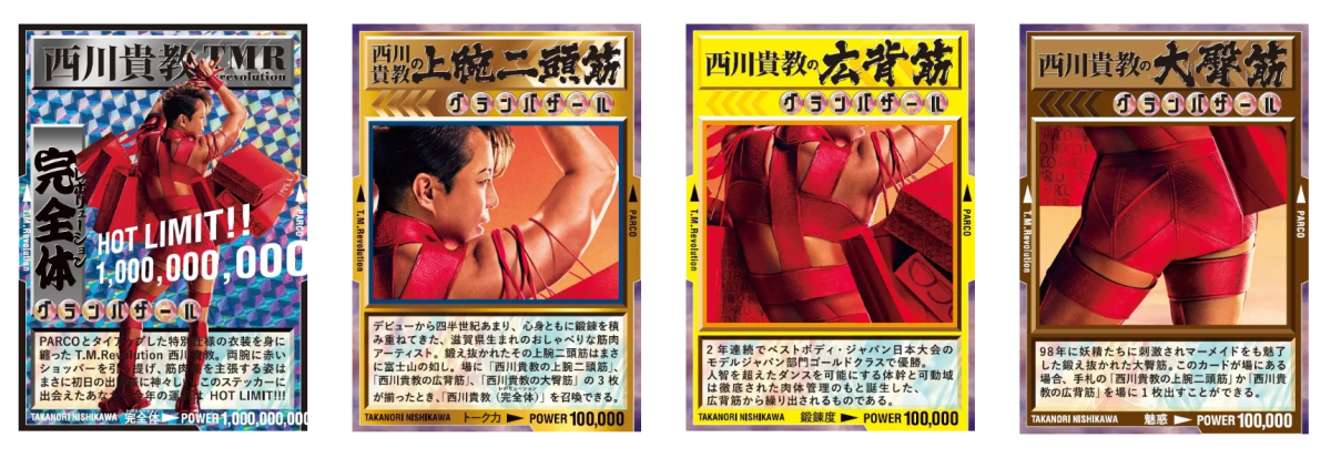 近日西川貴教與日本 PARCO 百貨合作拍攝年度促銷活動「PARCO GRAND BAZAR」廣告宣傳影片,兩方聯手打造的「GRAND BAZAR 特別版 HOT LIMIT 」紅色膠帶的服裝,相隔 26 年再次嶄露完美的肌肉線條,成為新廣告與視覺海報的亮點。