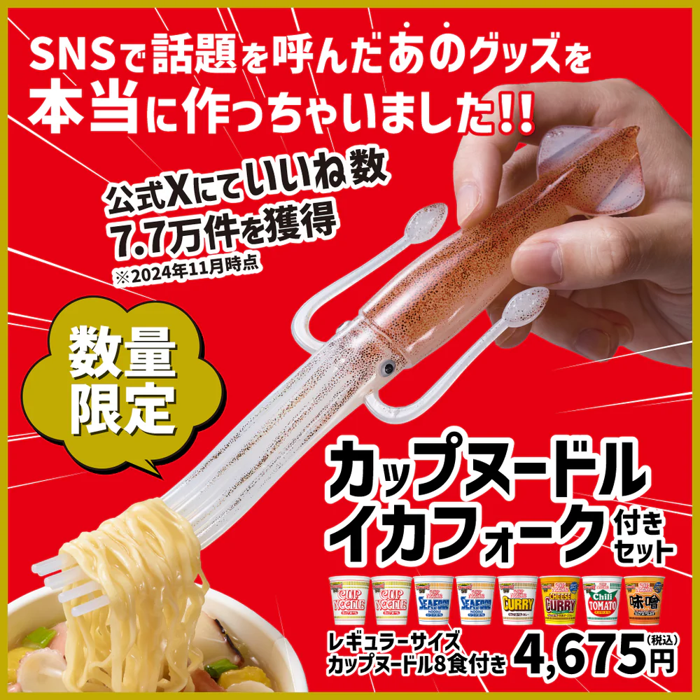 目前「魷魚叉杯麵套組」已經在日清官網、Amazon 以及友都八喜上上架開放預購,售價為 4,675 日圓,各位有興趣的不妨考慮購入。