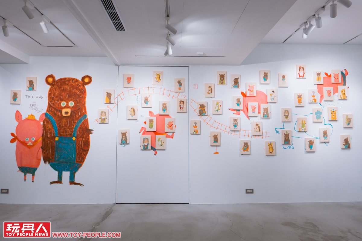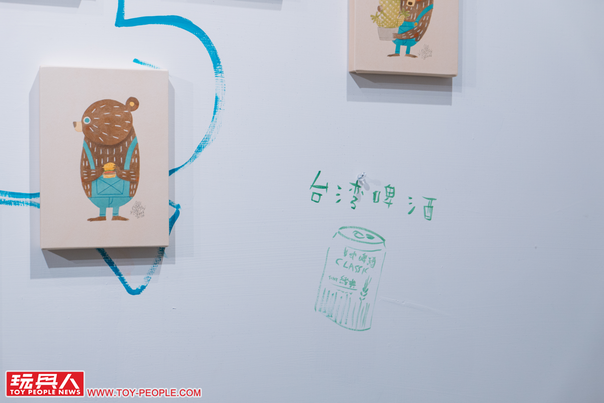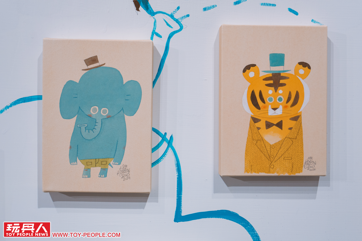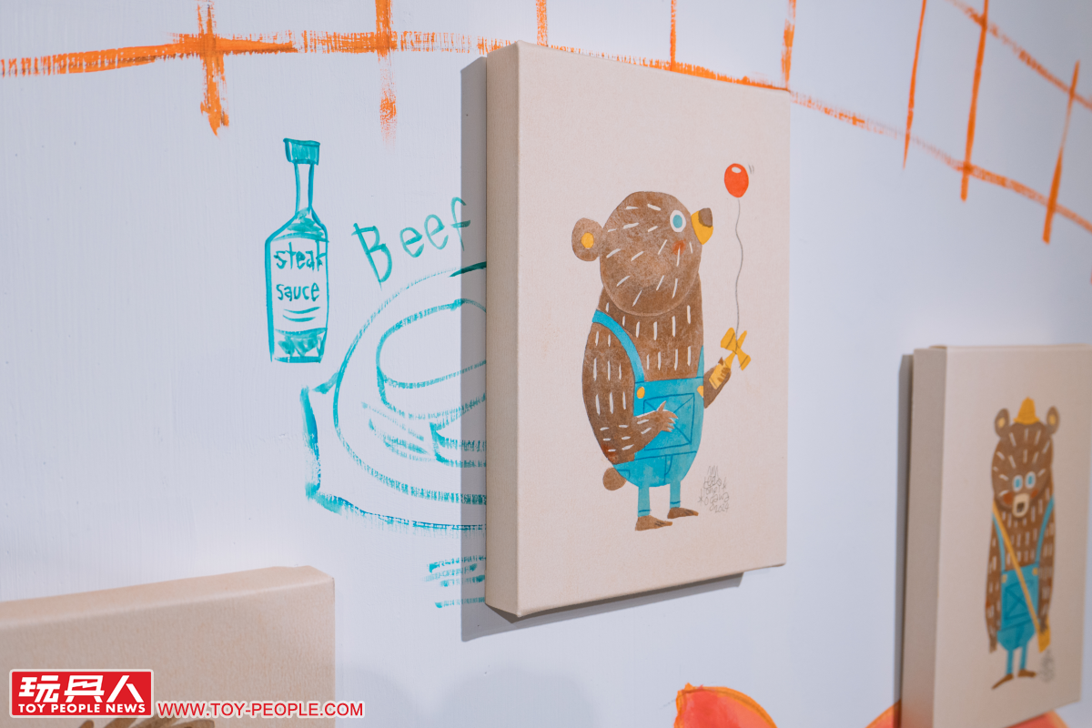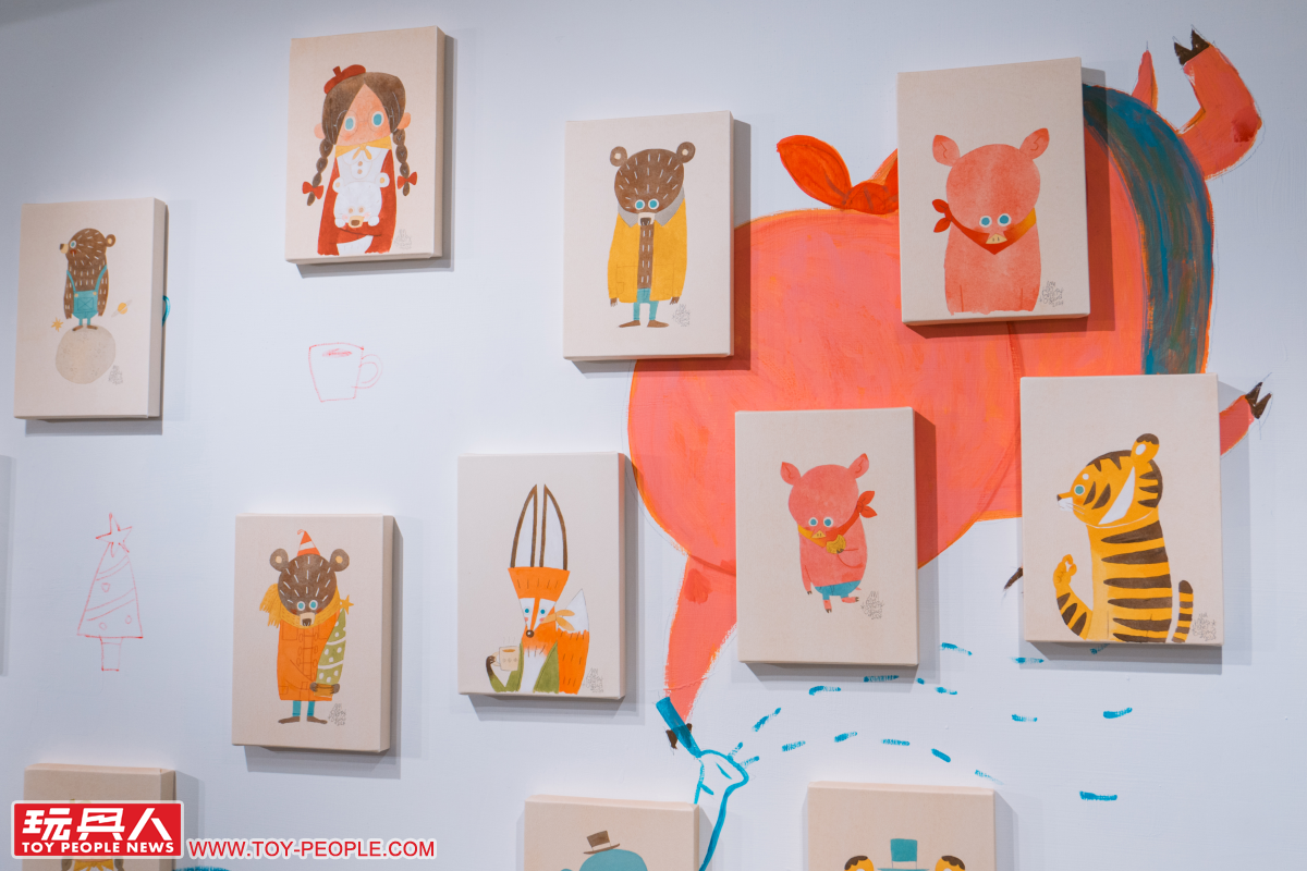 在 The little hut 這邊小川老師帶來了大量的畫作,將其內心想傳達的訊息化作溫暖的筆觸,在一個又一個可愛的動物角色中,總能感受到小川老師那療癒人心的作品魅力。Paradise 這邊則上演著一場街頭奔放與細膩療癒、兩種迥異藝術風格的對話,除了兩人筆下角色在畫作中共演之外,也有立體作品的登場。