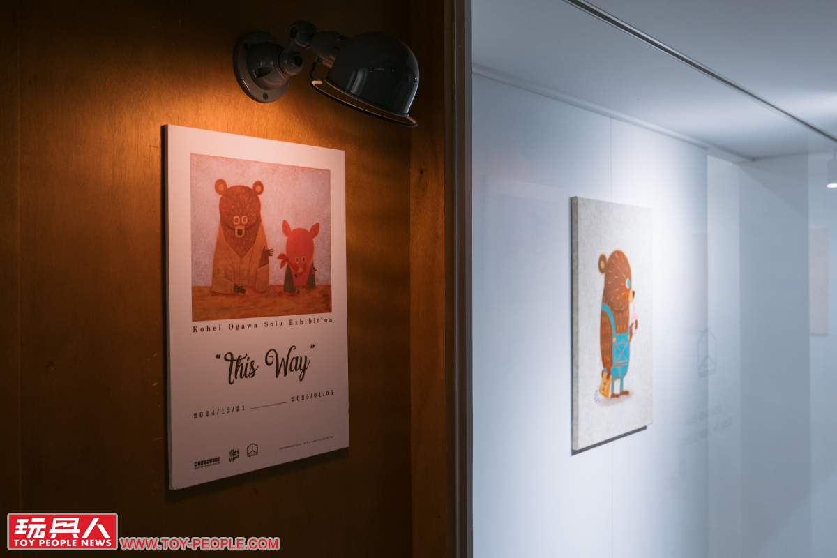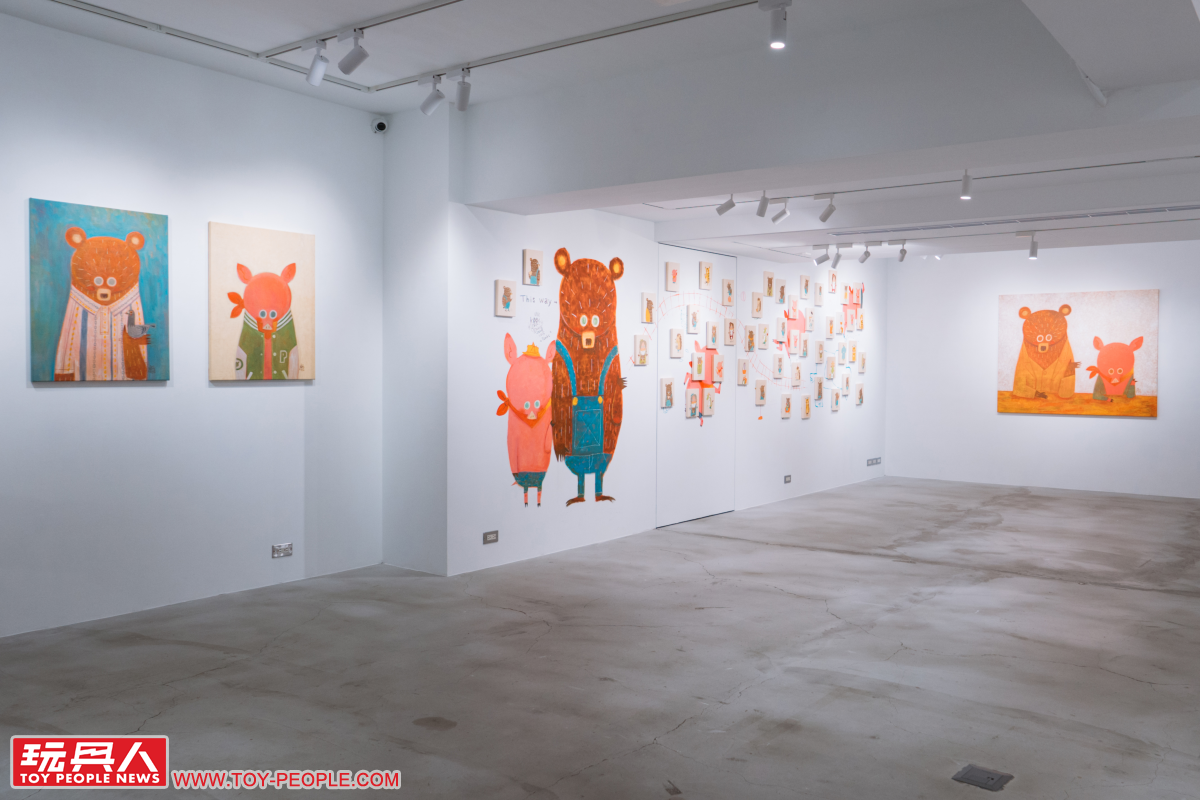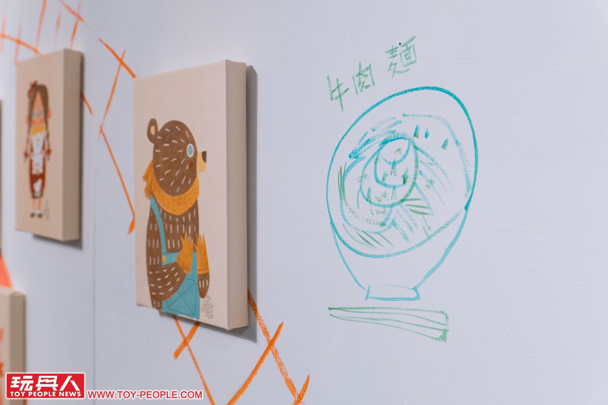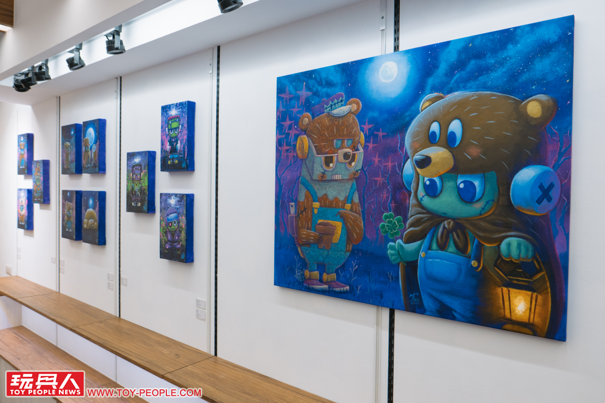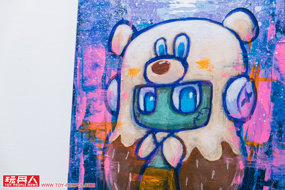 在 The little hut 這邊小川老師帶來了大量的畫作,將其內心想傳達的訊息化作溫暖的筆觸,在一個又一個可愛的動物角色中,總能感受到小川老師那療癒人心的作品魅力。Paradise 這邊則上演著一場街頭奔放與細膩療癒、兩種迥異藝術風格的對話,除了兩人筆下角色在畫作中共演之外,也有立體作品的登場。