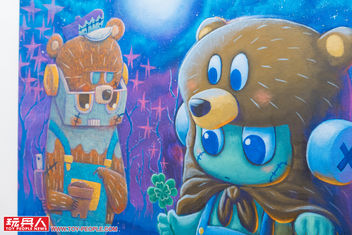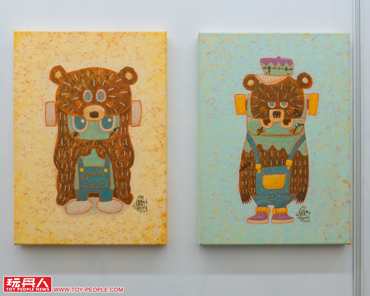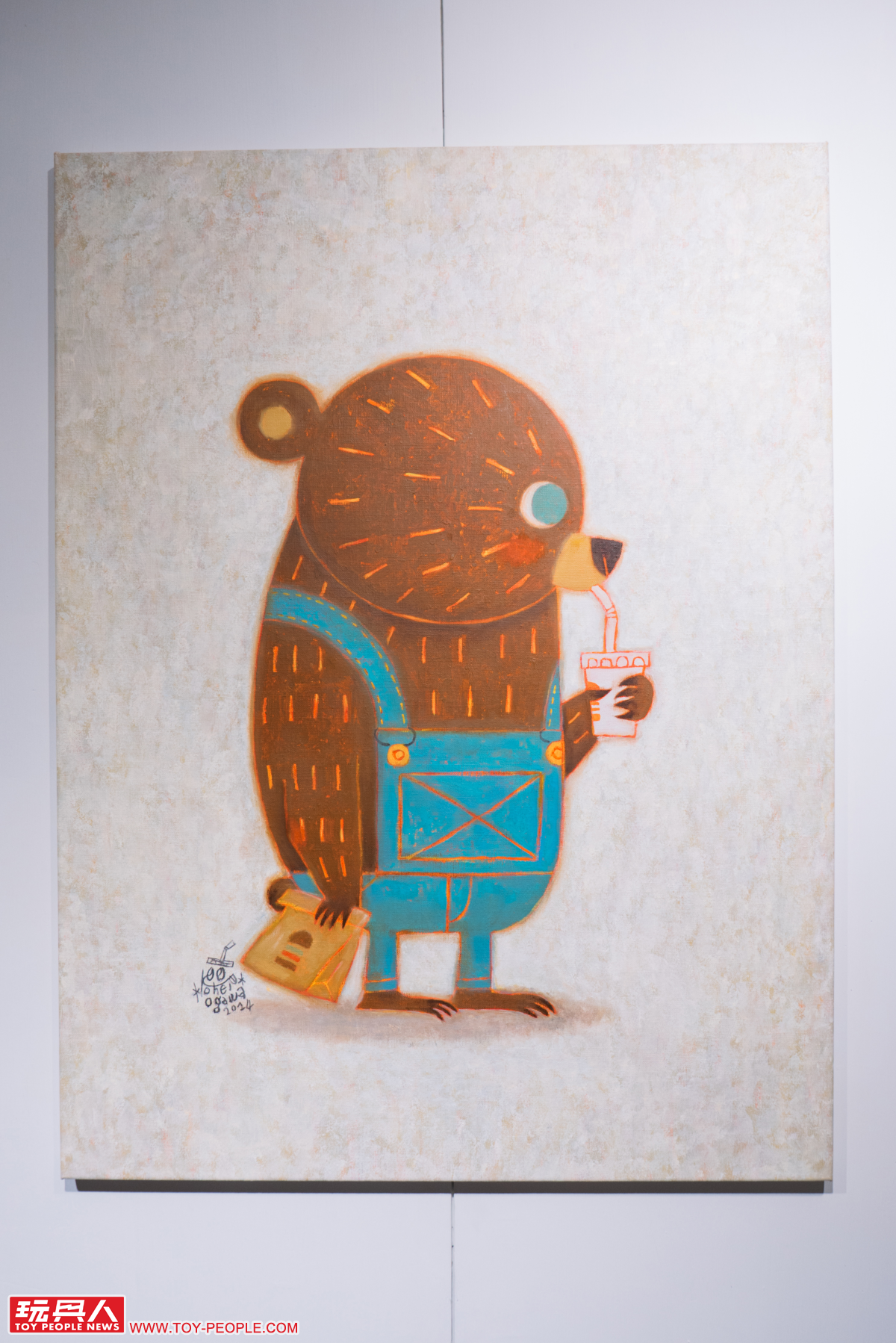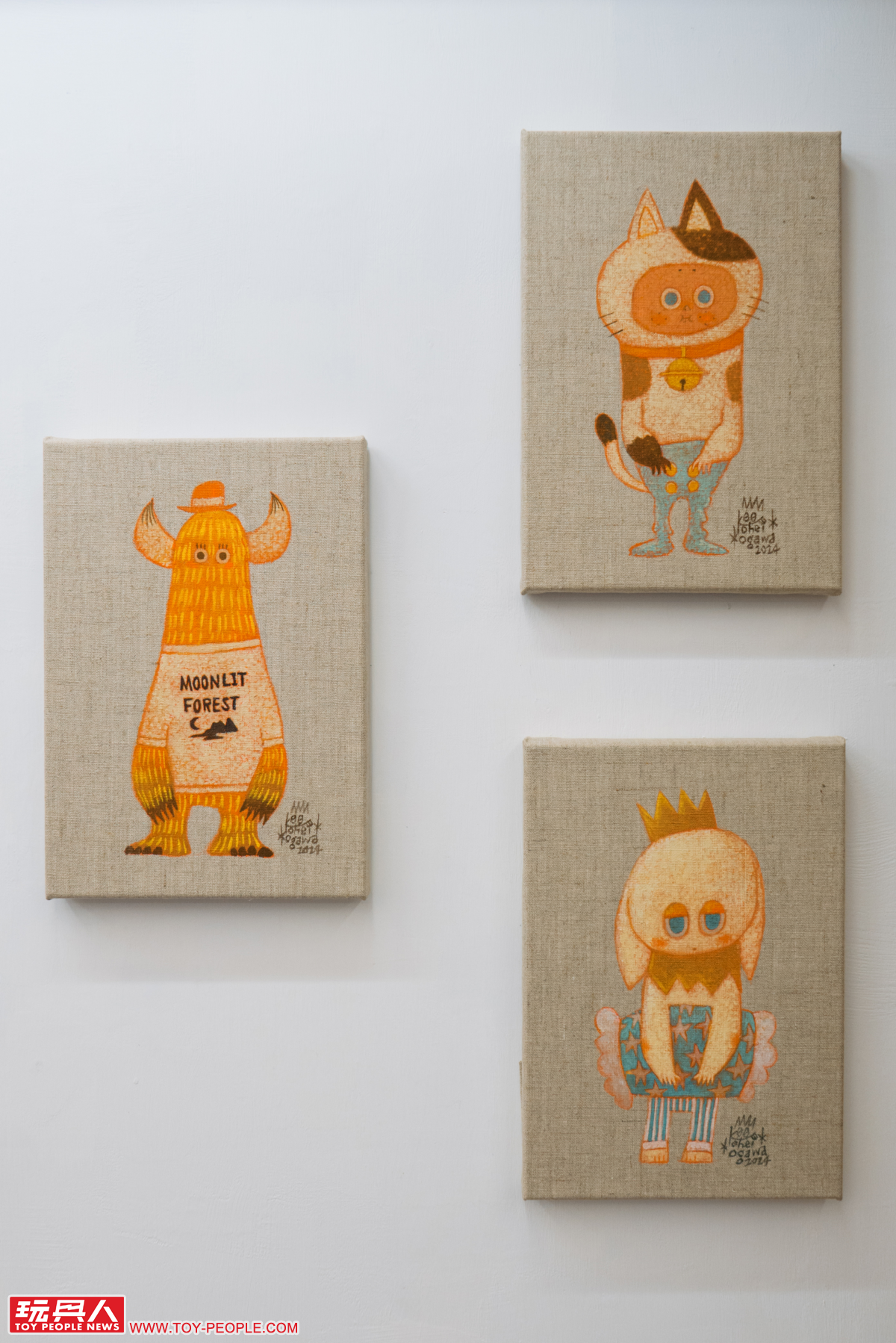 在 The little hut 這邊小川老師帶來了大量的畫作,將其內心想傳達的訊息化作溫暖的筆觸,在一個又一個可愛的動物角色中,總能感受到小川老師那療癒人心的作品魅力。Paradise 這邊則上演著一場街頭奔放與細膩療癒、兩種迥異藝術風格的對話,除了兩人筆下角色在畫作中共演之外,也有立體作品的登場。