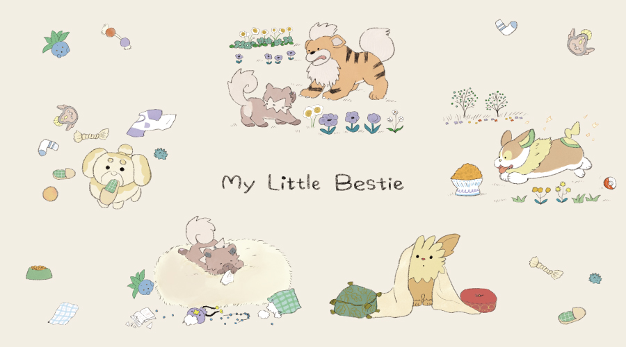 這次官方特別繪製「My Little Bestie」主題的繪圖,以五隻非常可愛的犬隻寶可夢 : 卡蒂狗、小約克、岩狗狗、來電汪與狗仔包來呈現,展現出這些寶可夢生活風情的可愛之處。結合主題釋出不少趣味商品,給各位喜歡毛孩寶可夢的粉絲一個玩味選擇。