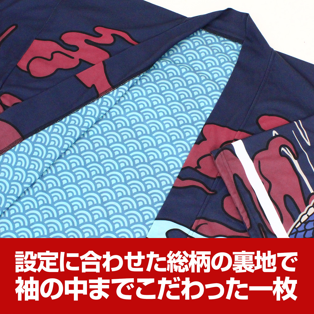 當然這次 COSPA 就將這件法被完美的商品化,包含內裏的花紋、胸前的家紋,腰間的魚以及雙臂的蛇身,以及背後「傍若無人」字樣跟鬼頭圖案,都完美的展現出這件衣服狂妄不羈的氣息。