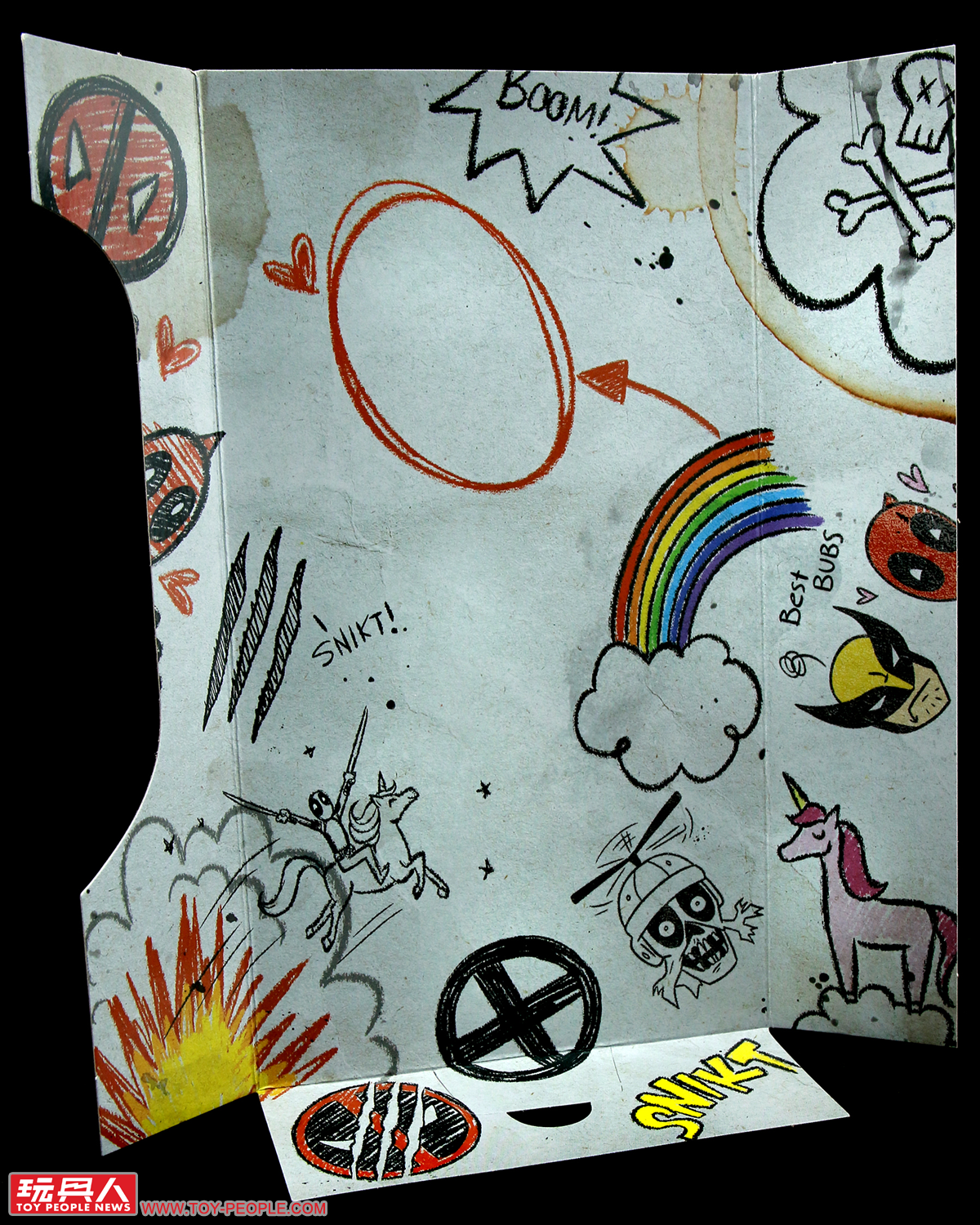 ▼開盒後的驚喜小彩蛋,看看這內部襯紙,是不是整個死侍風格都充滿了?