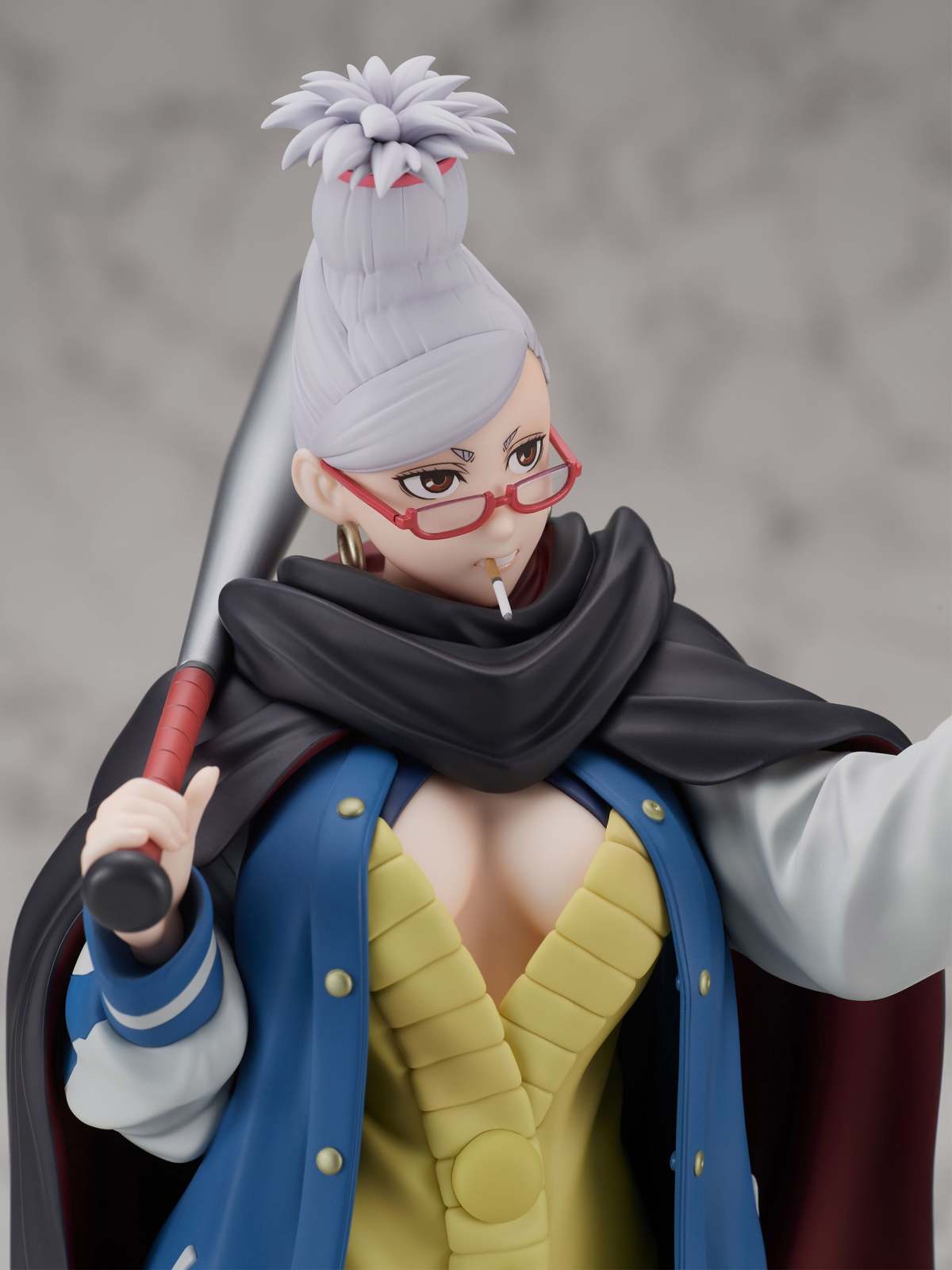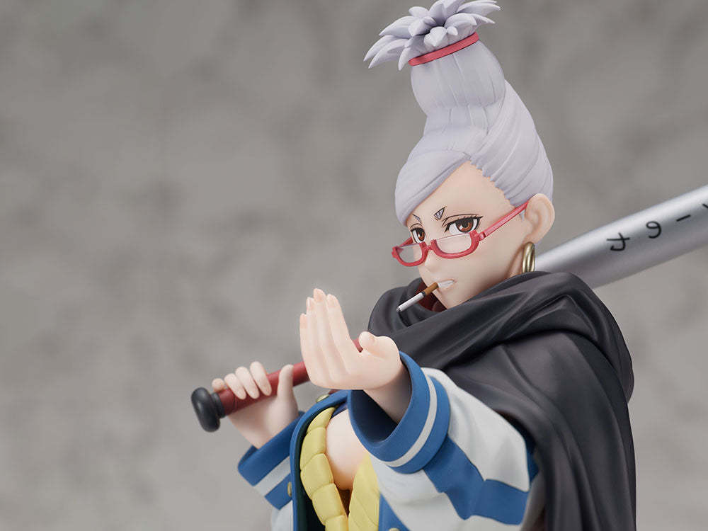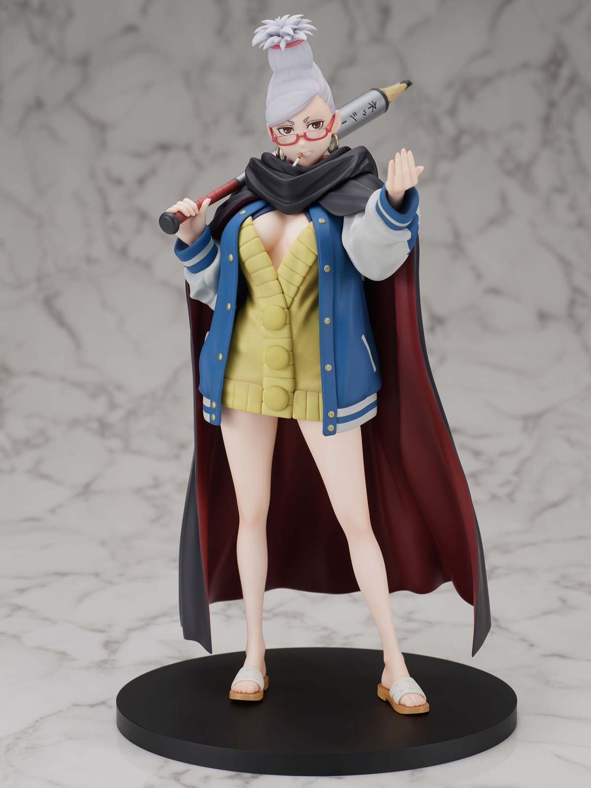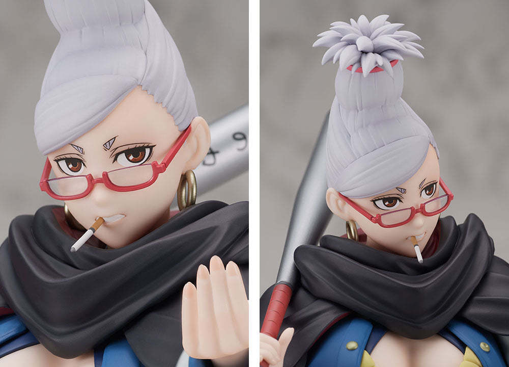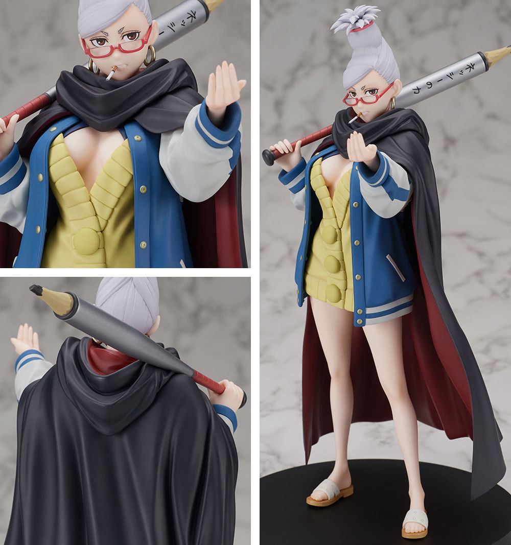本次的 F:NEX 綾瀨星子高約 26 公分,採用了動畫第三集中初登場面對暴走的厄卡倫,手向前伸出說「放馬過來」時的造型,雕刻還原豐滿的身形與纖細修長的大腿,製作出針織毛衣、棒球外套以及斗篷這個有趣服裝組合的皺摺和造型細節,嘴上叼著的煙、寫著「尼斯湖水怪的力量」的球棒也得到細膩的還原,再現最強辣嬤初登場時的姿態!