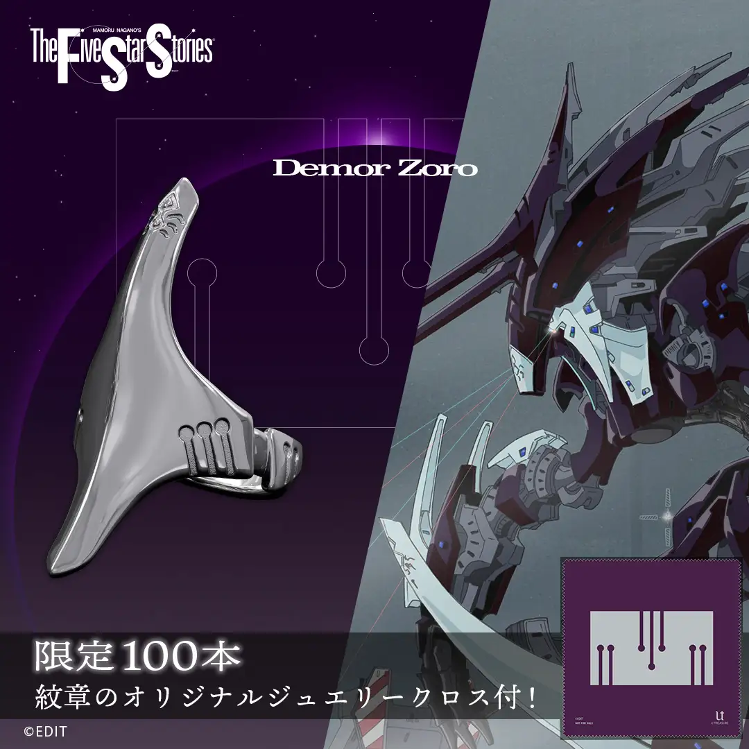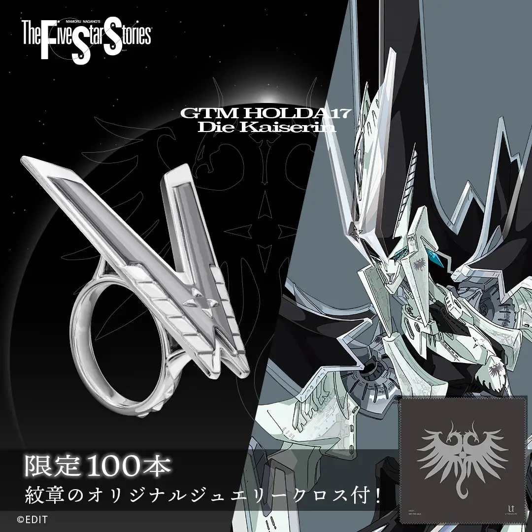 近日宣布與經典科幻機人作品《五星物語》(ファイブスター物語、The Five Star Stories)合作,以作品中的機體為主題,推出三款戒指。目前已於官網開放預購。