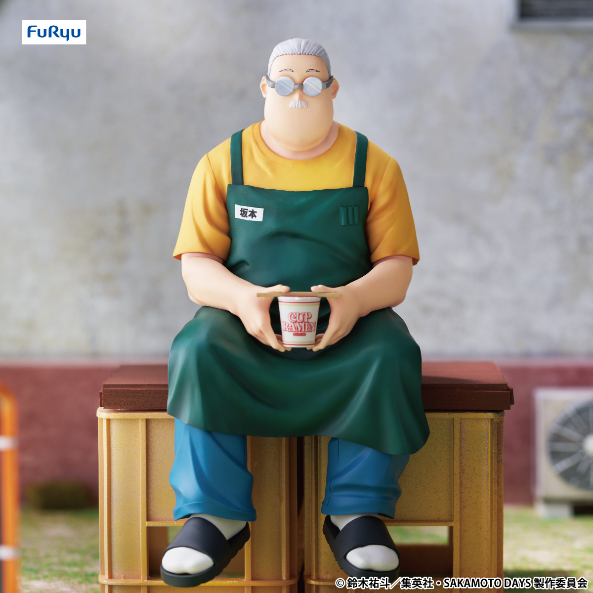 本次 Furyu 將坂本製作為人氣的泡麵蓋模型,呈現出他身著黃色 T 恤與綠色圍裙、手拿日清杯麵的坐姿動態,還原金盆洗手後的圓潤發福身形,雕刻出手臂的肌肉感與坐姿動態下的各種服裝皺摺,不發一語望向前方的樣子看起來毫無破綻,有著最強殺手的守護,各位玩具人一定可以安心地享用泡麵了吧!