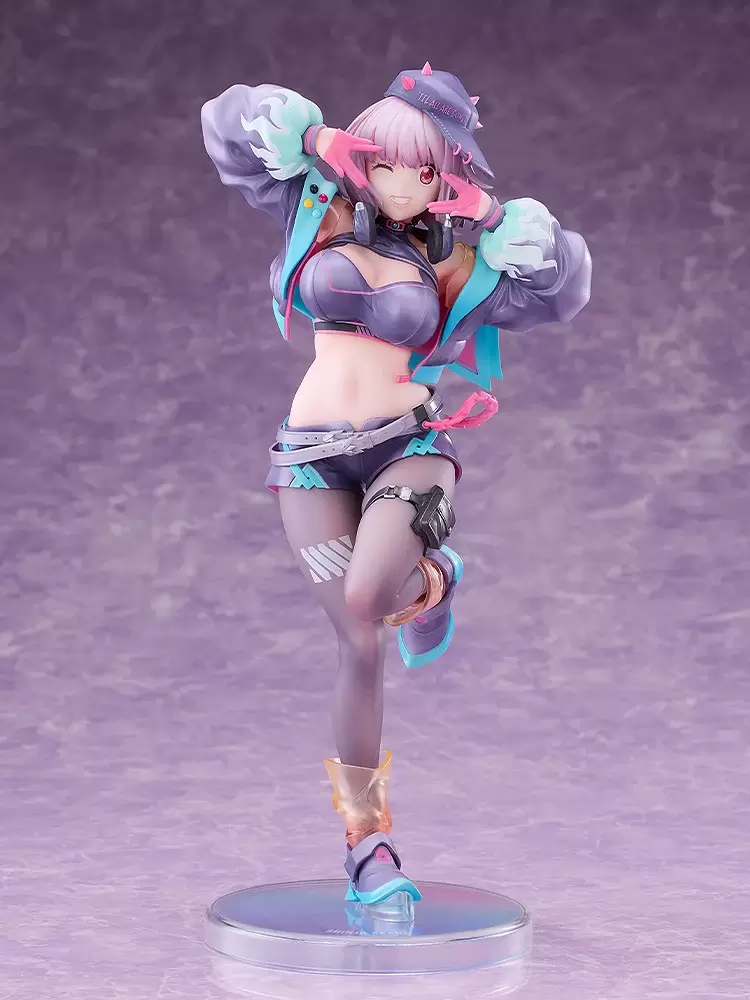忠實重現掛在脖子上的的耳機,短褲搭配紫黑色透膚絲襪的完美質感,巧妙平衡了純真與性感的魅力~「帽子」可自由脫戴,能依喜好變為可愛的小茜!
