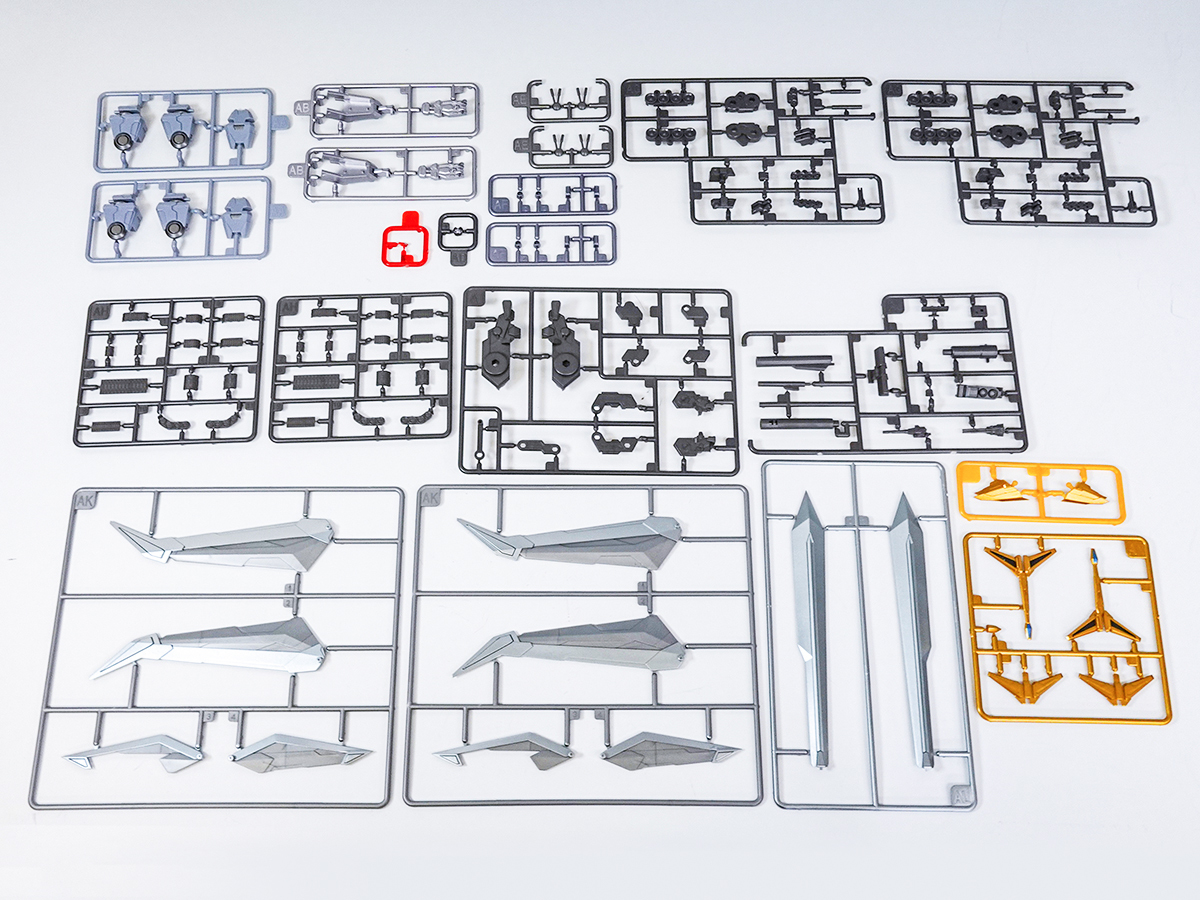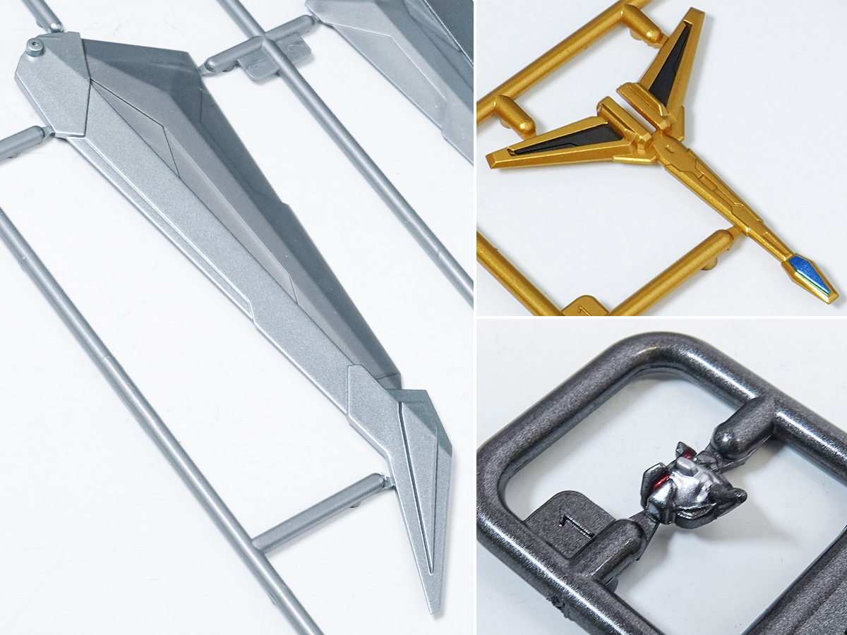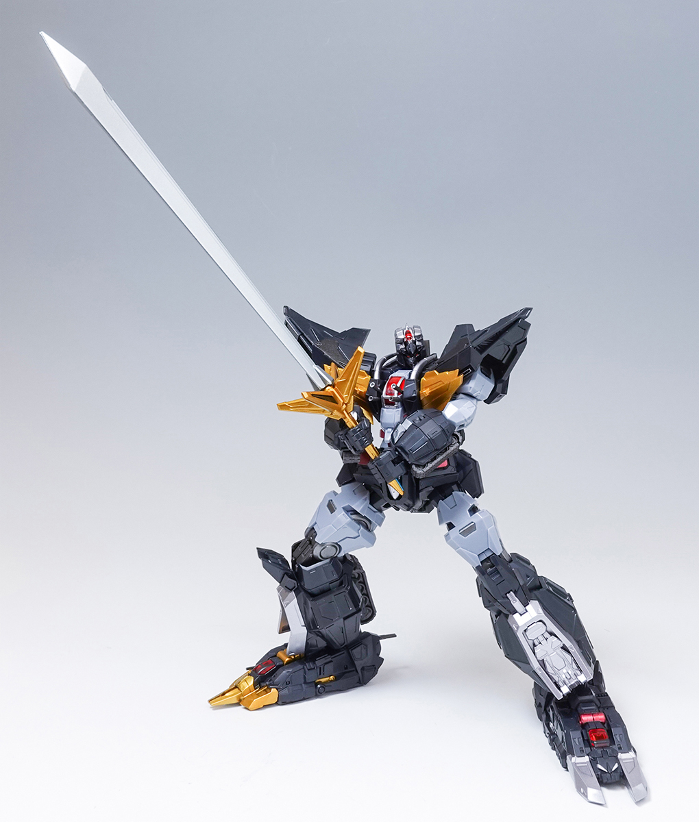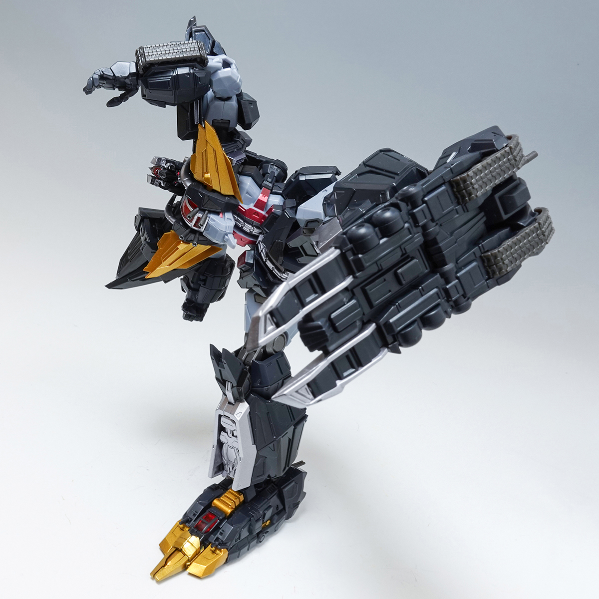 此外配件還附上了 X 型的強化飛翼、可換件露出噴嘴的噴射組件,能夠裝備在背部與後裙甲使機體輪廓、細節更加帥氣。各部靈活而牢固的可動關節設計能夠把玩出帥氣的拳擊、踢擊等格鬥姿勢,背部搭載的各砲管也能轉向前方再現施展「斷空砲」的姿態。而招牌武器「斷空劍」當然也一併附上,能搭配拉出式肩關節雙手持劍,再現施展必殺技「斷空光牙劍」的姿態!