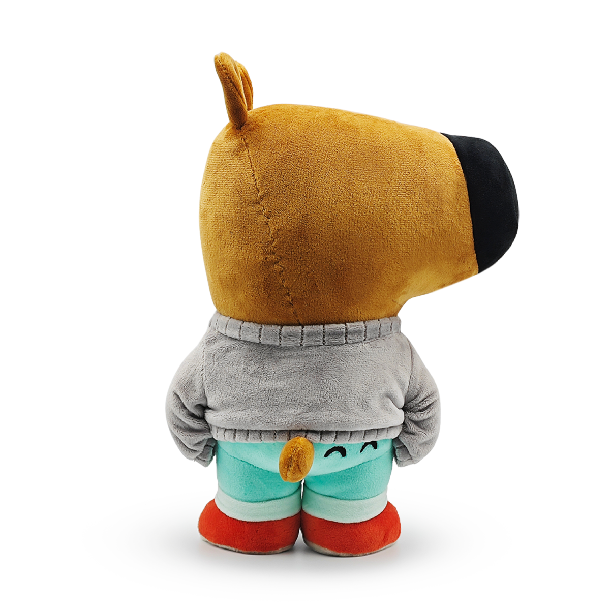 本次 YOUTOOZ 與 Chill Guy 的原作者 Phillip Banks 合作,將 Chill Guy 製作為高約 22.8 公分的絨毛娃娃,製作出他身著灰色毛衣、紅色帆布鞋,雙手插在口袋裡的標誌造型,背後還做了一個平時插圖看不見的小尾巴,臉上愜意的笑容及腮紅則看起來是以電繡方式呈現。而大家最納悶的絕對是「像佩佩豬一樣臉只有在單側,立體化時該怎麼辦?」的問題是怎麼處理的呢?答案就是不處理,背後直接留白,畢竟他就只是個秋蓋~