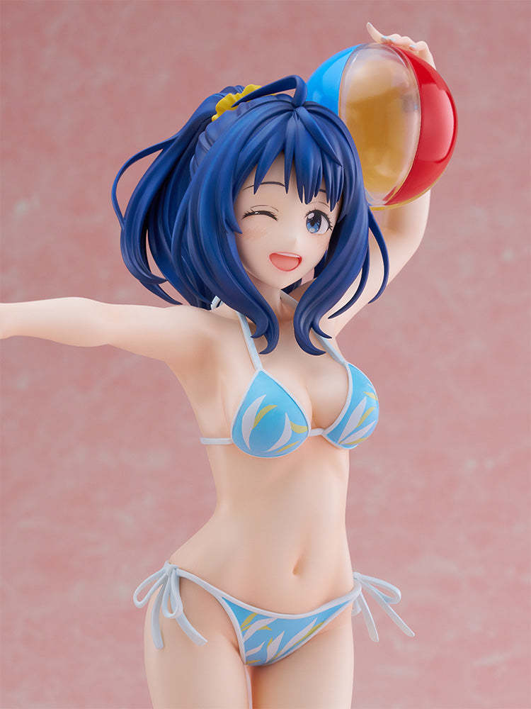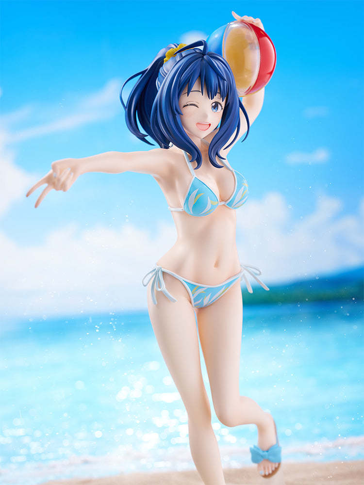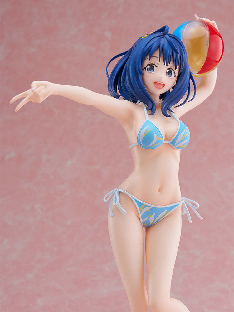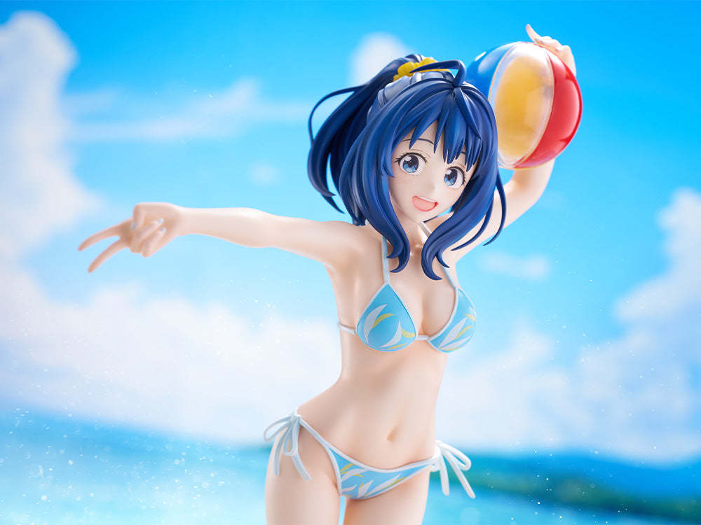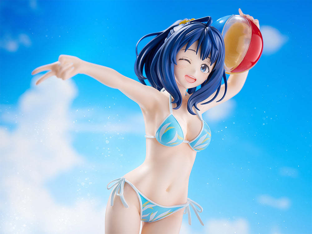 本次的 TENITOL TALL 八奈見杏菜高約 31 公分,採用了八奈見同學在動畫第三集中一行人去海邊集訓時的泳衣造型,製作出她一手持海灘球、另一手向前伸出比耶的姿勢,雕刻還原豐滿而纖細姣好的身材曲線,泳衣的綁繩、拖鞋的蝴蝶結等細節也被精緻再現!海灘球部分採用彩透材質打造,配合可愛的造型與動態在明亮的燈光下散發像是真的在海邊玩耍的活潑氣場!本次在 FURYU HOBBY MALL 官網預購更會附贈限定特典的拋媚眼頭雕,提供不同的擺設選擇!