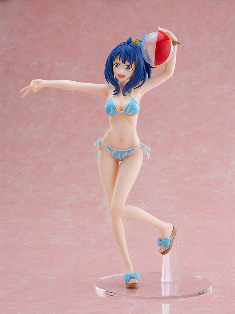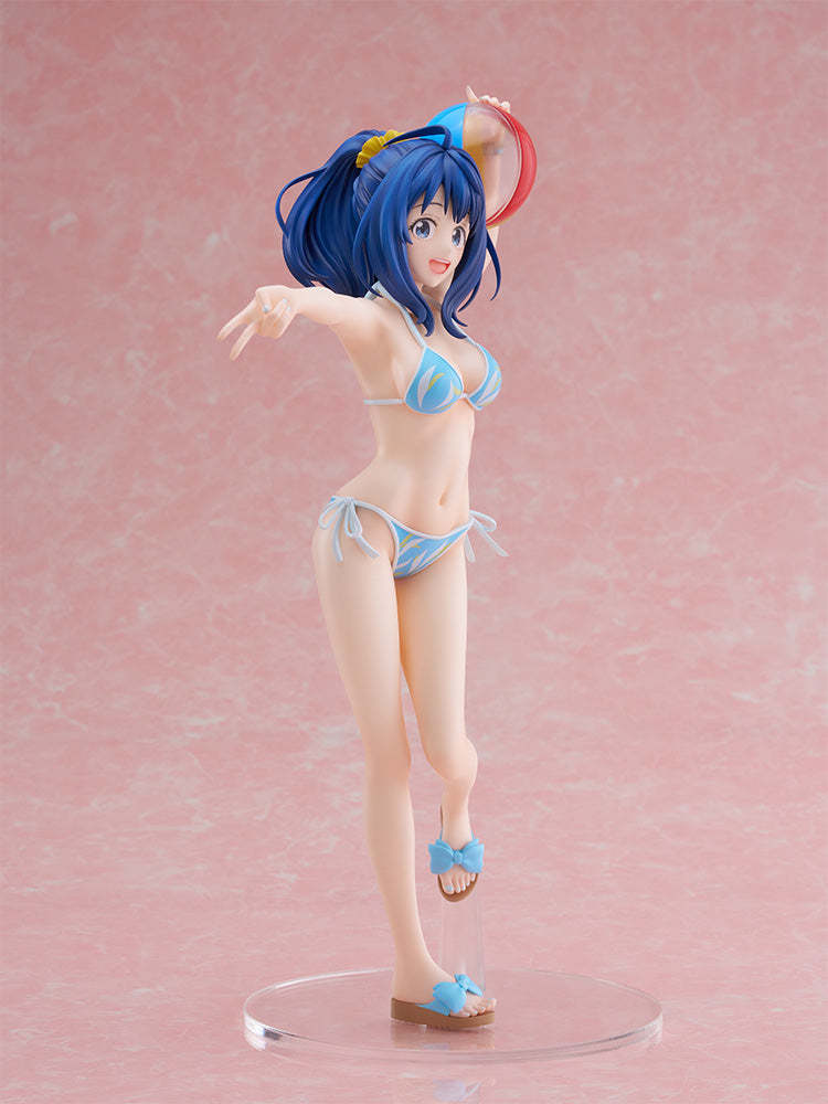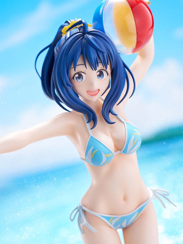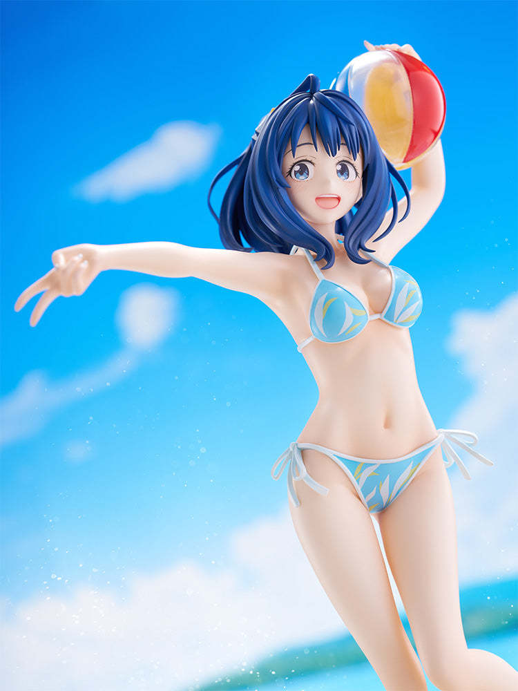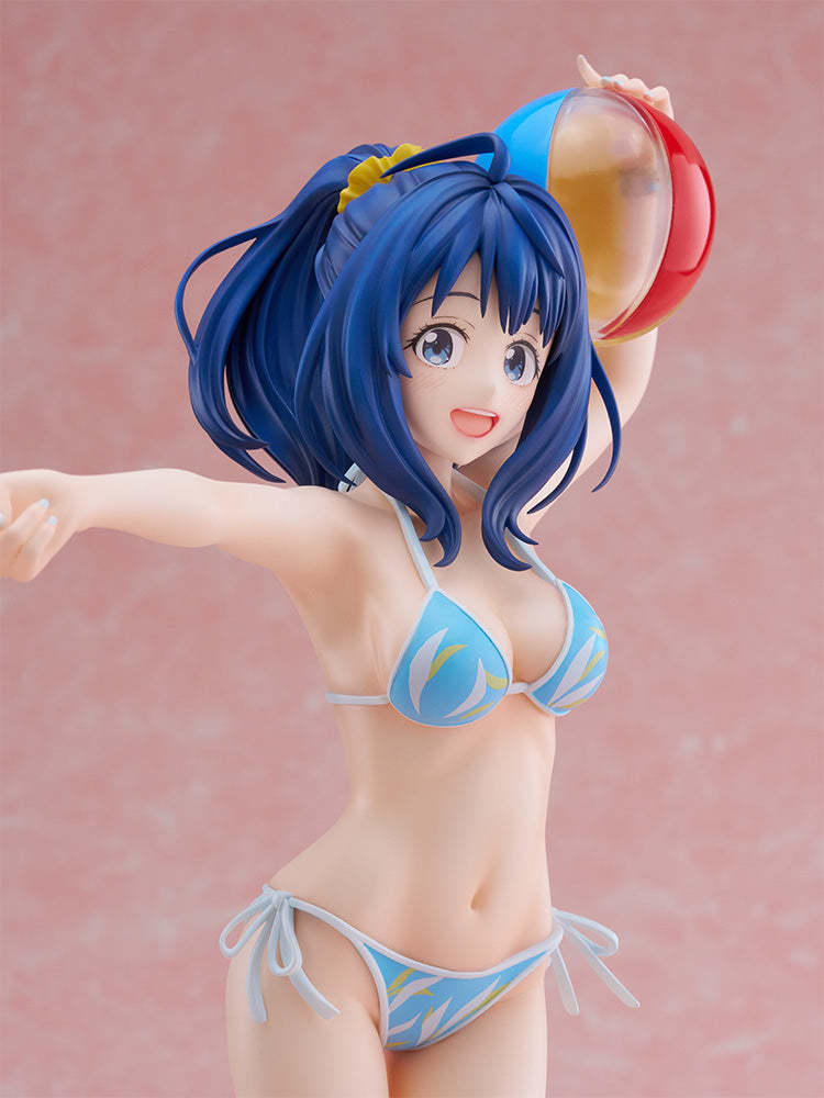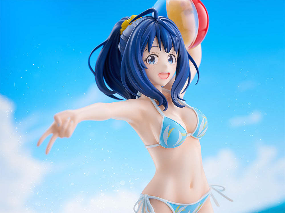 本次的 TENITOL TALL 八奈見杏菜高約 31 公分,採用了八奈見同學在動畫第三集中一行人去海邊集訓時的泳衣造型,製作出她一手持海灘球、另一手向前伸出比耶的姿勢,雕刻還原豐滿而纖細姣好的身材曲線,泳衣的綁繩、拖鞋的蝴蝶結等細節也被精緻再現!海灘球部分採用彩透材質打造,配合可愛的造型與動態在明亮的燈光下散發像是真的在海邊玩耍的活潑氣場!本次在 FURYU HOBBY MALL 官網預購更會附贈限定特典的拋媚眼頭雕,提供不同的擺設選擇!