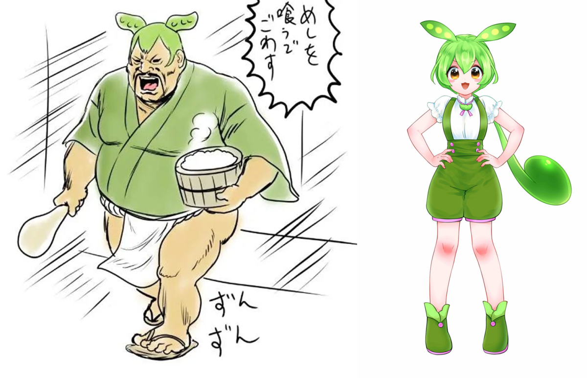 ▼ 味噌グラム繪製的「ずんだどん」跟原本的「ずんだどん」模樣