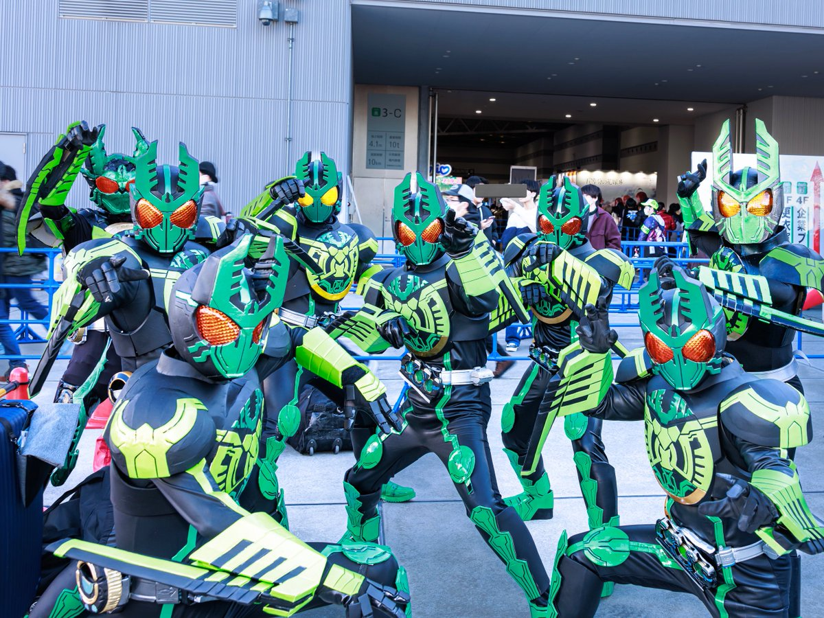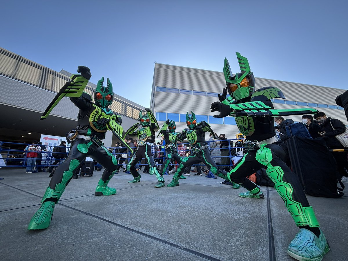 且本次 C105,真的有不少 Coser 扮成假面騎士OOO 鍬螳蝗參戰,當然鍬螳蝗要出沒就是要陳群結隊,這效果真的無比強大阿 ! 他們也對松田悟志的親民大為讚賞,完全沒有藝人的架子,跟大家親切問候,還鼓勵並讚美他們的 Cosplay。