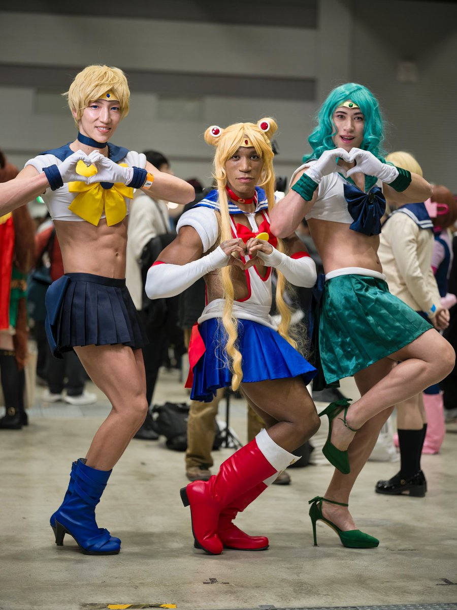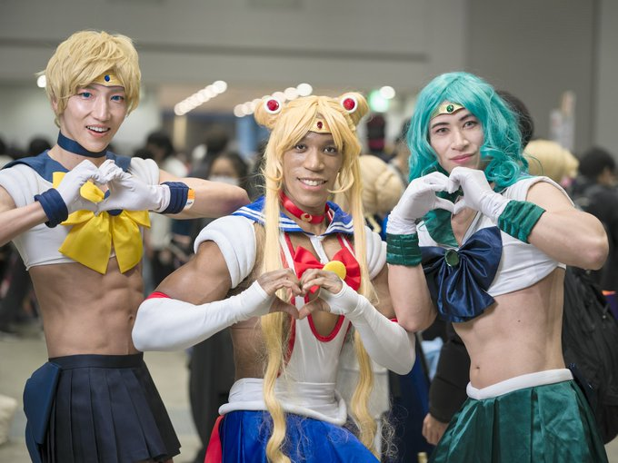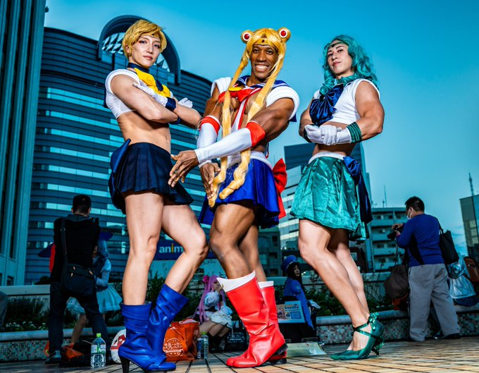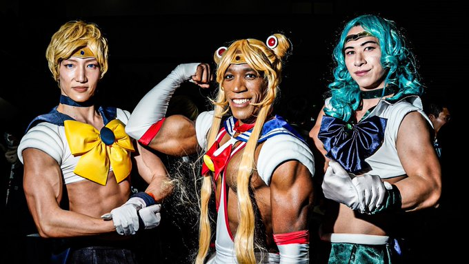 AKIHITO 與 Sosuke 分別選擇「天王星」天王遙以及「海王星」海王滿,而 Steve JEAN 則選擇月野兔,這樣的陣仗搭配壯碩的身材,真的是...代替肌肉來懲罰你!衝擊效果真的是滿分。