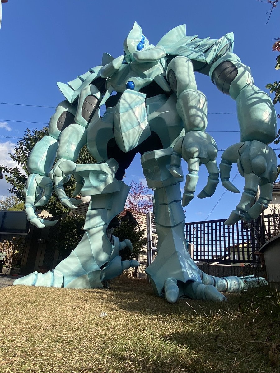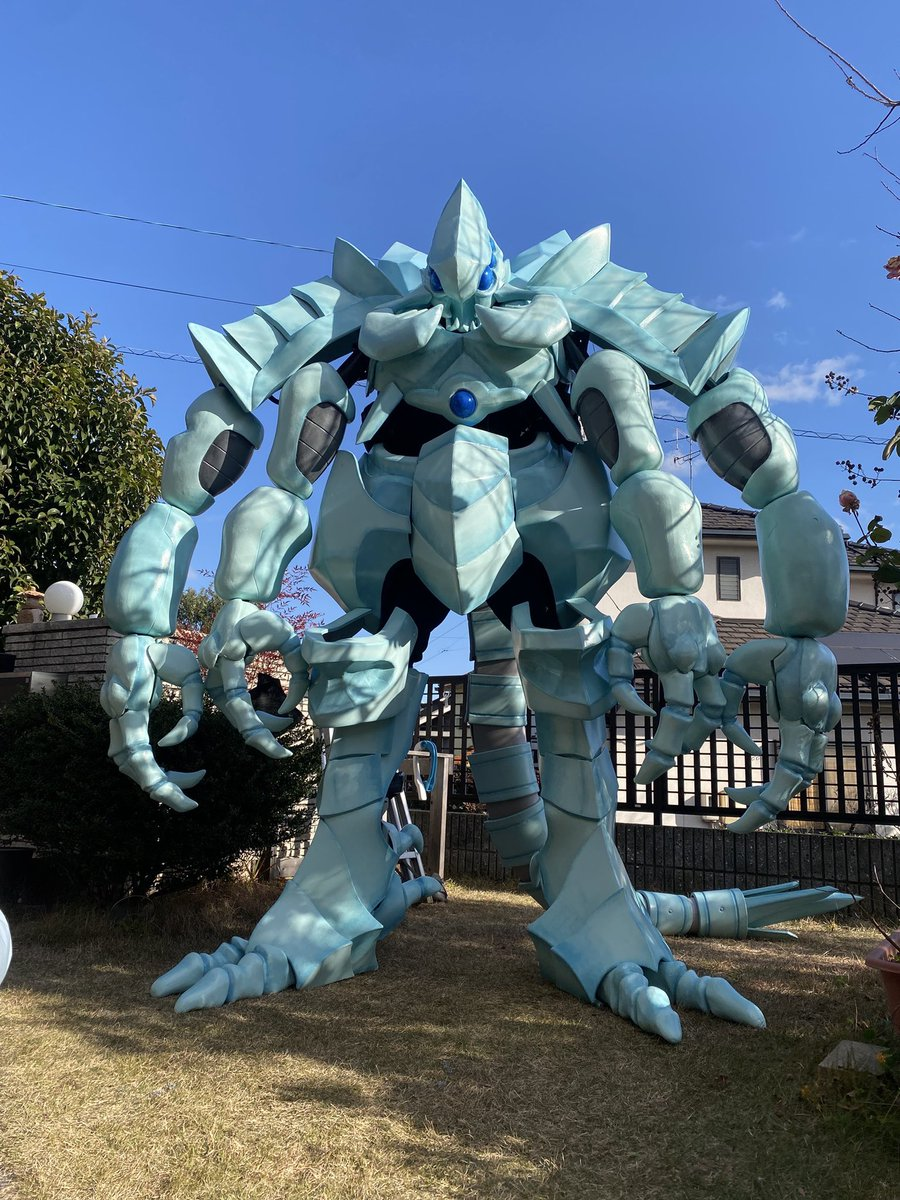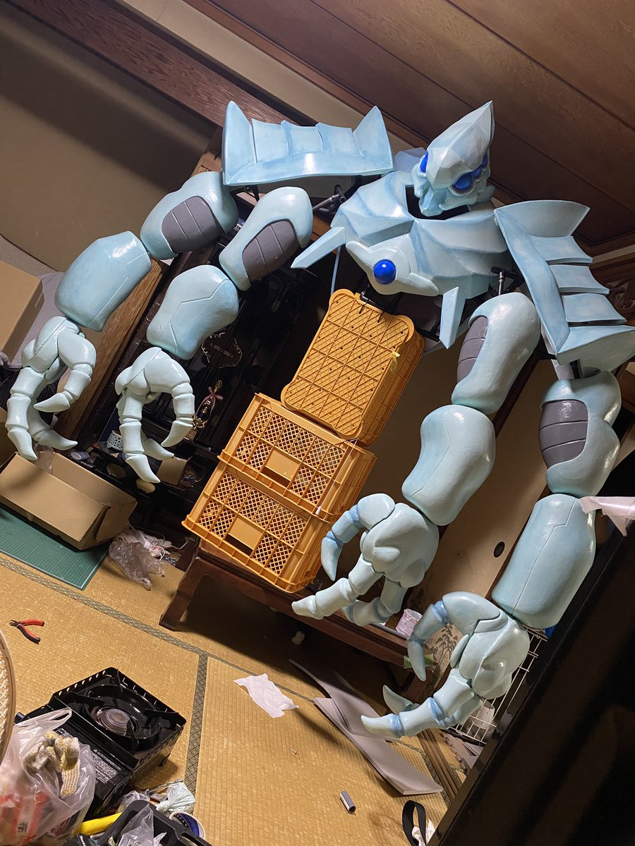 穿起來就是如此霸氣的模樣,但如此巨大的同時,也必須使用鐵架支撐才能穿上,不只製作困難,連穿上動起來也很吃體力的。