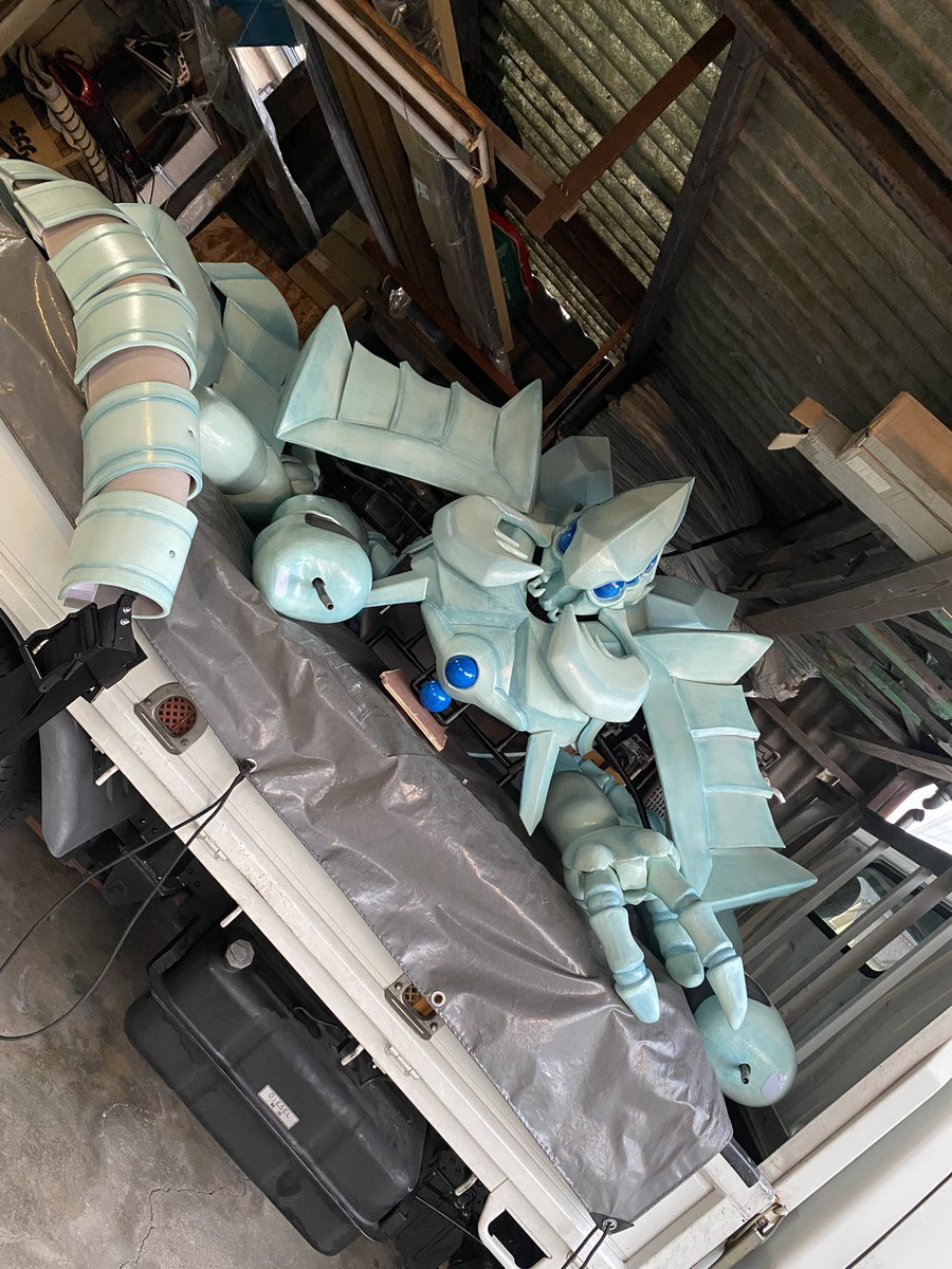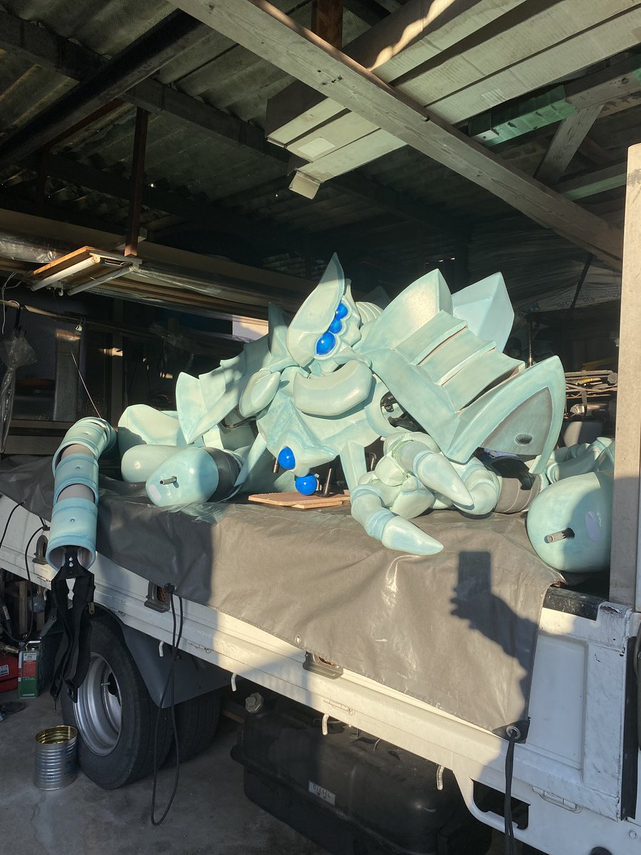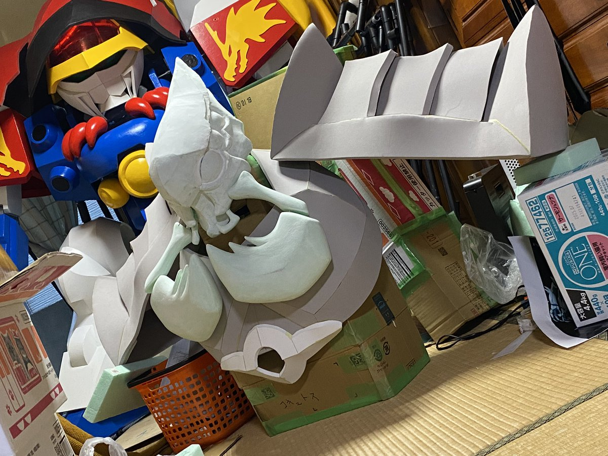 穿起來就是如此霸氣的模樣,但如此巨大的同時,也必須使用鐵架支撐才能穿上,不只製作困難,連穿上動起來也很吃體力的。