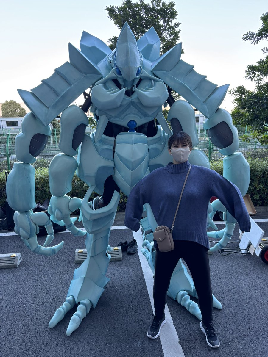 看看站在一般人旁邊,就可以感受到這套服裝的巨大尺寸魄力。