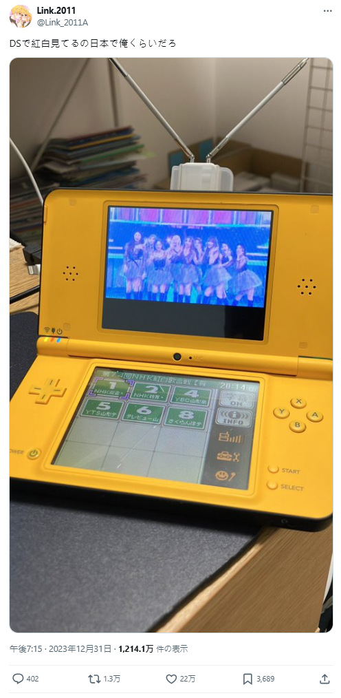 甚至推主去年也用同一台 NDS 收看紅白,看來這台真的保存很好 XD。