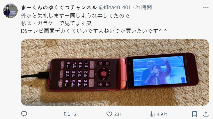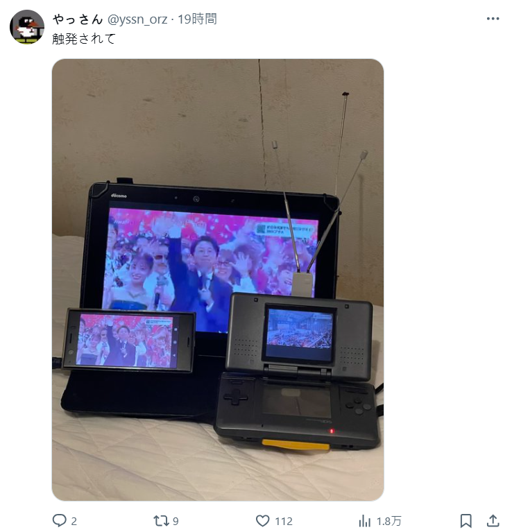 畢竟 NDS 距今已經是 20 年前的掌上型遊戲機了,不論是現在看來小小的 3 英吋液晶螢幕,還是僅 26 萬色的顯示支援,現在看來都是非常過時的。不過推主仍享受這樣的觀看方式,還搭配兩台舊的 Sony Xperia XZ1 一起看,自嘲是今年唯一一個在 NDS 上看紅白的人。