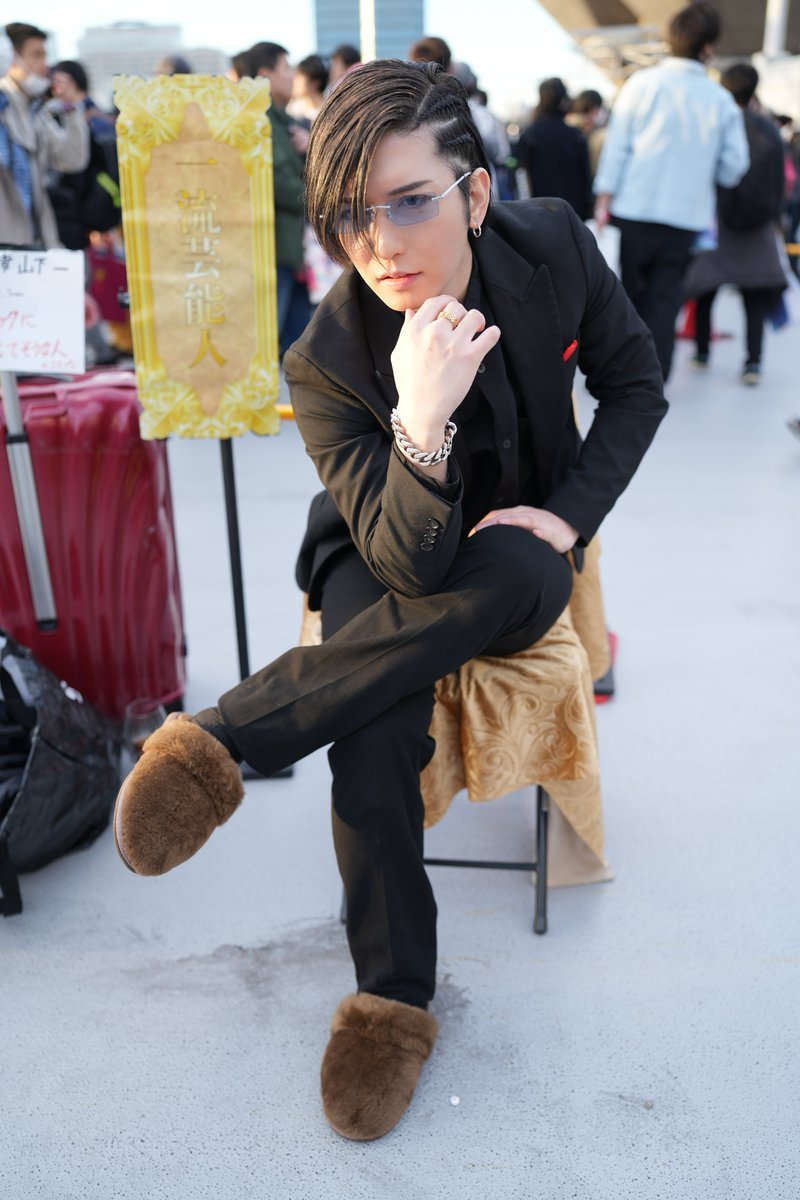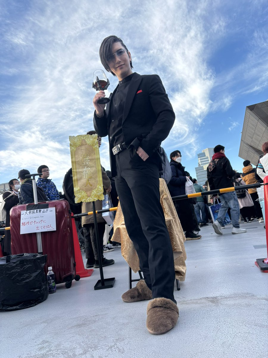 現場 Coser 雲集,可別說 ACG 人物、迷因,甚至藝人都有人嘗試,這是讓人驚豔的就是這位大帝国皇帝山下 ( @Emperor_Yama ),他在 C105 扮成日本視覺系男星 GACKT,他以自信且帥氣的神韻,表現出跟 GACKT 本人相同的英姿風範,吸引不少群眾圍觀,更在網路上引起話題。