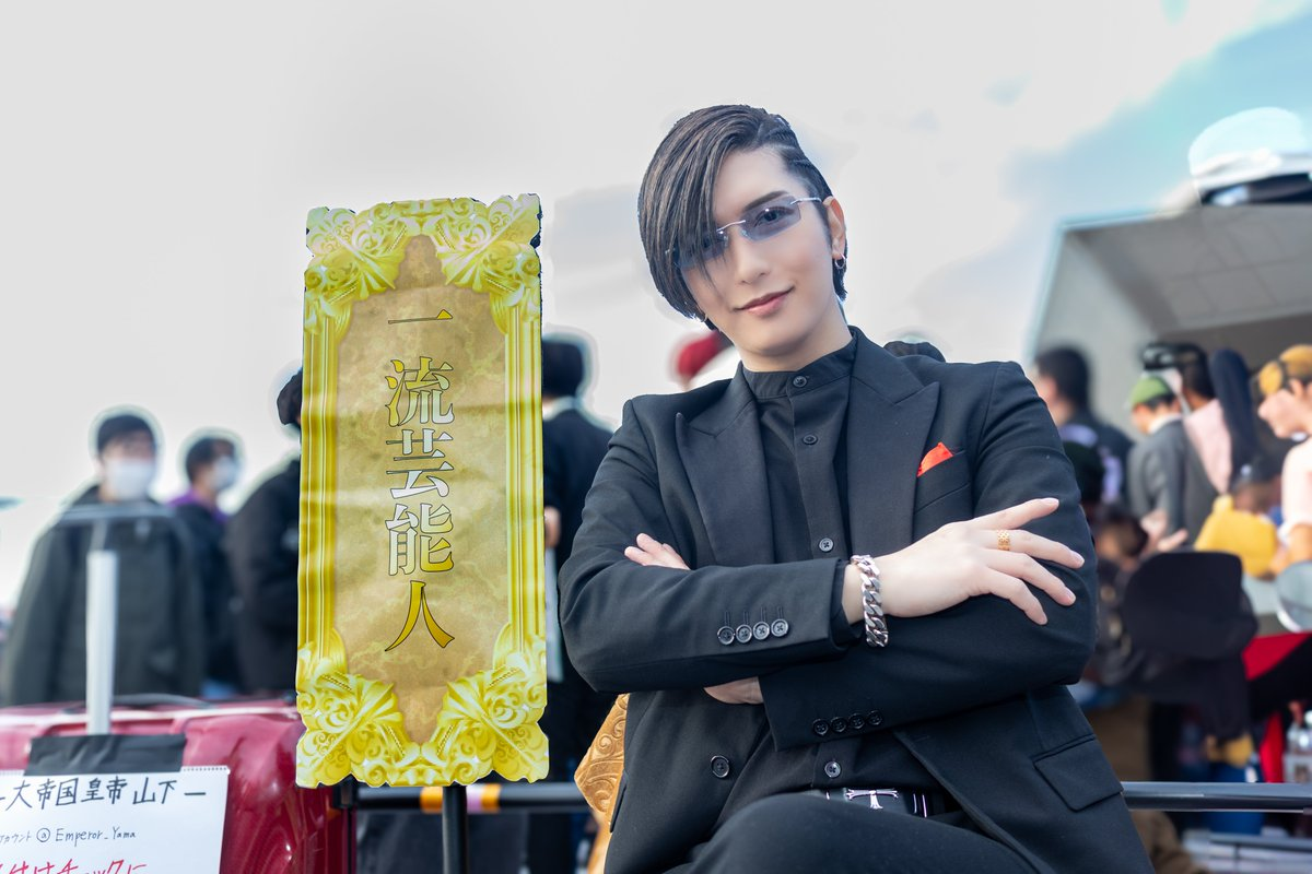 事實上大帝国皇帝山下並非以 Cosplay 為常態活動,他本身是一位網紅跟樂團成員,在 Instagram 有著五萬以上的追蹤數。不過時常也會嘗試 Cosplay 分享在社群上,這一兩年開始會到 Comiket 參戰,先前多以 ACG 角色為主,C104 曾嘗試《名偵探柯南》的赤井秀一。