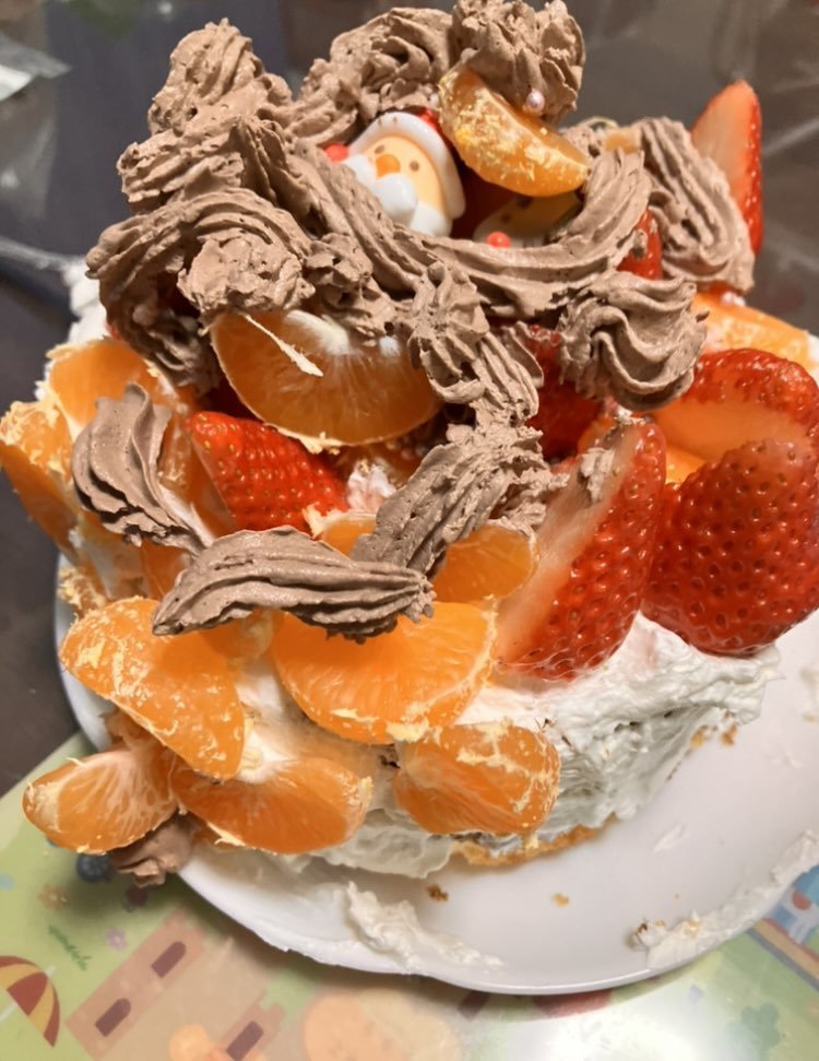 這是由Twitter(現稱X)網友むにむに(@nennekomunyos)所分享的一則推文,內容是他那6歲的孩子,在2024年時所製作的聖誕蛋糕——更準確來說,第一張圖是2023年,還是5歲時的他所做出的蛋糕,而推文中的第二張圖才是2024年所製作的聖誕蛋糕。