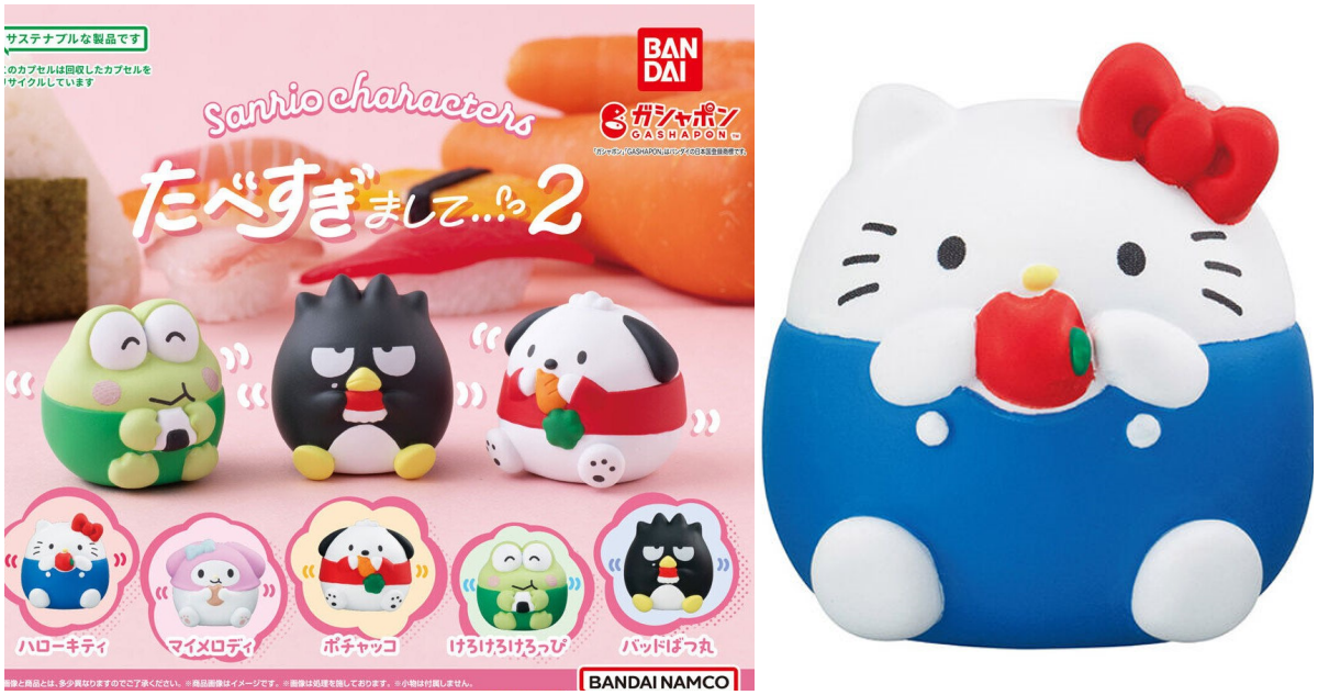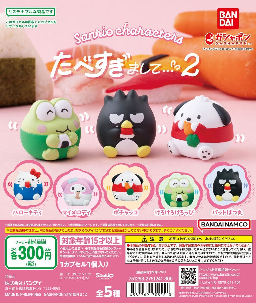 日本 BANDAI 萬代玩具公司轉蛋事業部 GASHAPON 旗下的「吃太多了...(たべすぎまして…)」系列,以超人氣的三麗鷗角色為主題,推出第二彈最新商品:「三麗鷗明星 吃太多了...2」轉蛋,一共有 5 種款式,一轉參考售價為 300 日圓,於 2025 年 01 月下旬開轉!