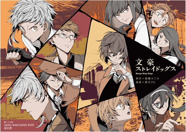 《文豪Stray Dogs》(文豪ストレイドッグス),由朝霧卡夫卡擔當原作、春河35作畫的日本漫畫作品,從 2013 年開始於角川的《Young Ace》連載。本作故事是以世界上的知名文豪或其作品為原型,使用異能力戰鬥的故事。