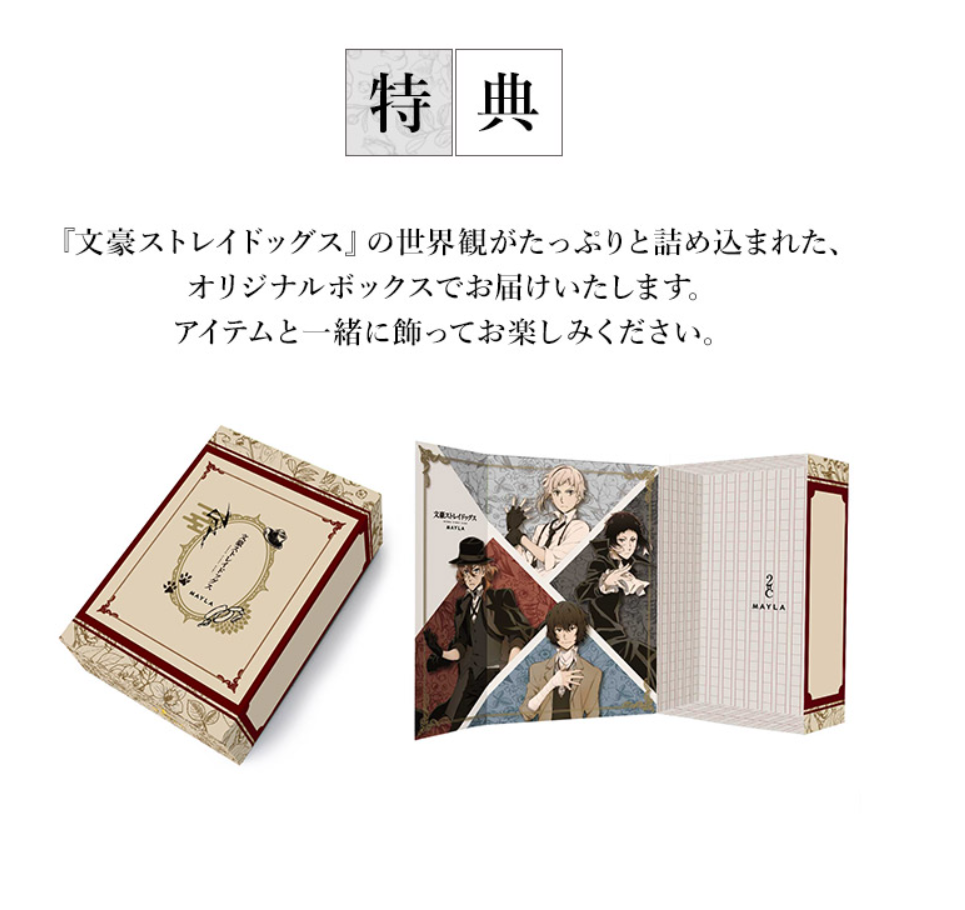 每雙鞋都附有專屬《文豪Stray Dogs》世界觀的專屬盒子包裝,極具收藏價值,可與短靴一同展示。