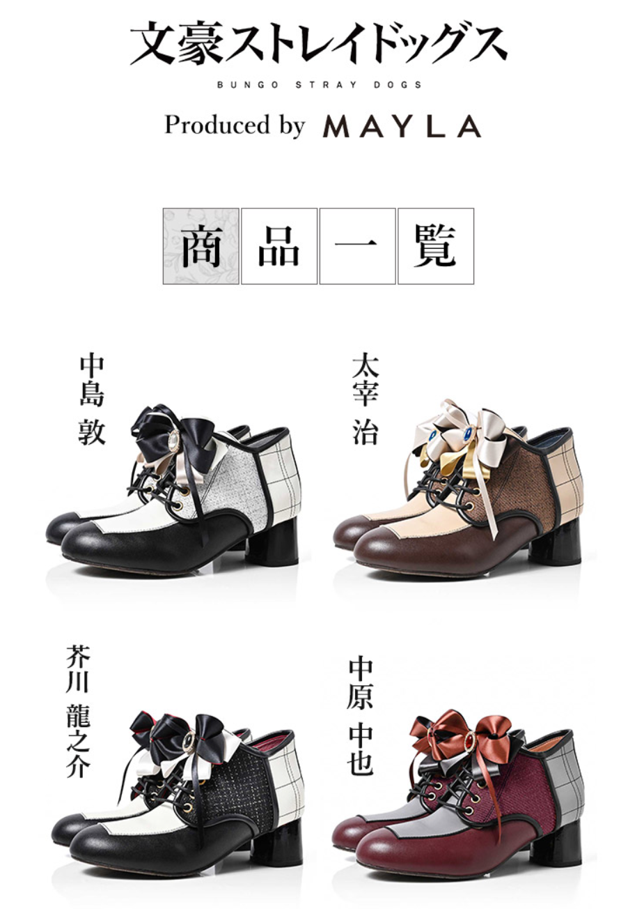 近日宣布將與《文豪Stray Dogs》( 文豪ストレイドッグス ) 合作,推出以人物為形象的短靴款式,共有四款樣式。售價為 31,900 日圓,目前已可於官方網站預購。