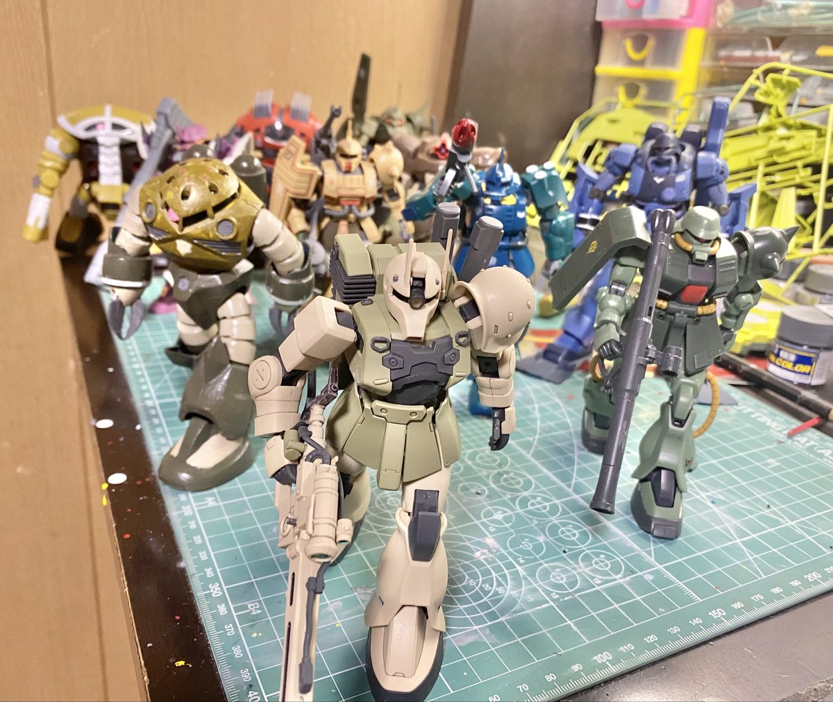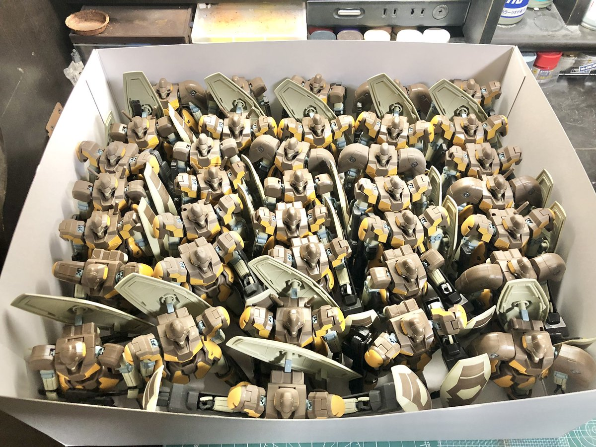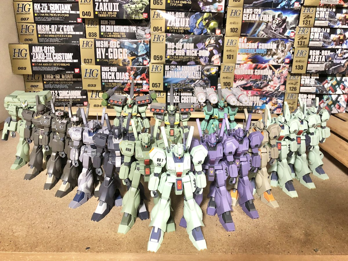 除此之外,クノティス還喜歡收集複數收藏,他表示只要把同一台機體擺出陣仗,就很好拍攝,氣勢也截然不同,時常也因為這樣買了一堆量產機,雖然組裝不困難,但真的也是堆了不少 www。