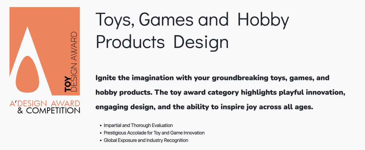 此次路遙圓創參加的是A'Design Award|Toys, Games and Hobby Products Design類別【玩具、遊戲及休閒產品設計】,獲獎分類為1. Platinum 白金獎 (1%)2. Gold 金獎 (2%)3. Silver 銀獎 (2%)4. Bronze 銅獎 (5%)5. Iron 鐵獎 (20%)。