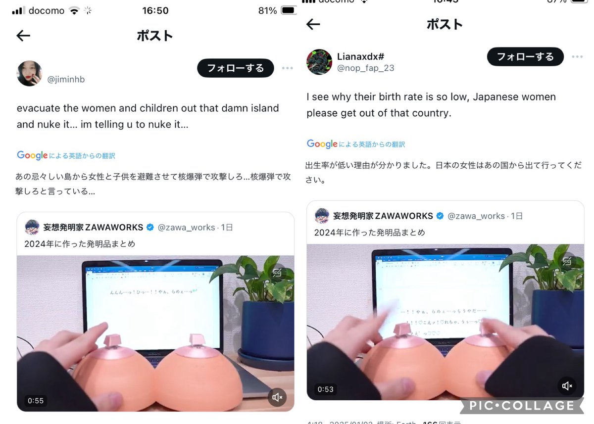 日本一位時常的在 X 上發布自己奇妙創意的推主「妄想發明家 ZAWAWORKS」( @gerogeroR ),近日因為新作品「胸部鍵盤」等所謂「思春期妄想」的發明,遭到海外網友炎上,批評作品根本低俗骯髒,甚至連日本網友都關注起這件事。