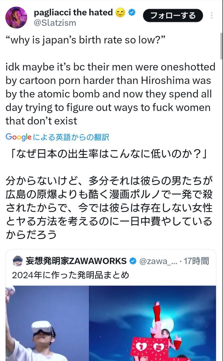 沒想到這則影片,傳到海外網友眼中,對此嗤之以鼻講到 : 「難怪日本生育率世界最低」,甚有人說日本人能接受這些根本太瘋狂了,還說應該「疏散婦女兒童,投下一顆原子彈」,意外在海外大炎上。
