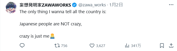 「妄想發明家 ZAWAWORKS」後續也對此發言,針對這些來自不同國家的批評指教,只想告訴大家「日本人並不瘋狂,瘋狂的只有自己。」,希望別牽連日本整體國民,這都是自己發想的創作而已。