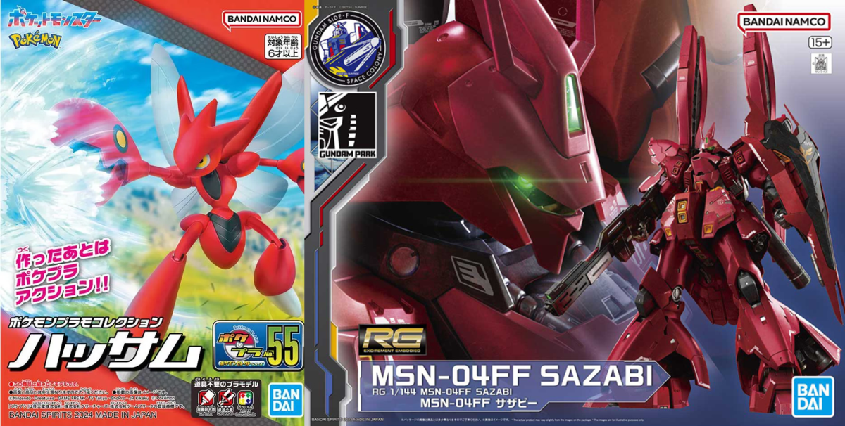 這兩款都為 BANDAI SPIRITS 的商品,其中「MSN-04FF 沙薩比」是使用福岡「RX-93ff ν鋼彈」實物大立像落成之際,現場播放的特別影片演出中登場的機體。以《機動戰士鋼彈 逆襲的夏亞》中的設計為基礎,追加了原本沒有的全新原創武裝「雙角型感應砲(Double Horn Funnel)」,像是蝦螯的感應砲讓不少鋼普拉玩家印象深刻。