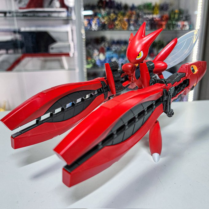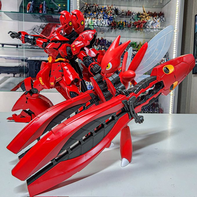日本一位鋼普拉 YouTuber タカハシ ( @gdam429mk2 ),選用 BANDAI SPIRITS 先前推出的『POKEPLA』系列巨鉗螳螂與「MSN-04FF RG 沙薩比」來混搭,透過替換兩隻獨有的武器來展現組裝模型的玩味之處,博得不少網友關注讚賞。