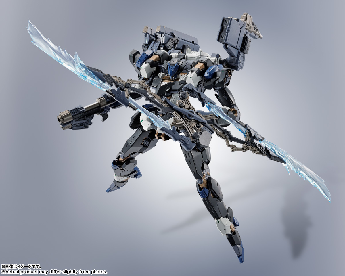 機體部分零件使用合金材質製作,能夠兼具牢固的可動關節與帥氣造型,把玩出極具躍動感的姿勢。配件部分附有針槍、刺針飛彈、雷射雙刃刀、實彈自律型飄浮兵器等,就由替換零件方式可再現雷射雙刃刀展開雷射刀刃、實彈自律型飄浮兵器 / 刺針飛彈 / 機體核心的展開狀態。