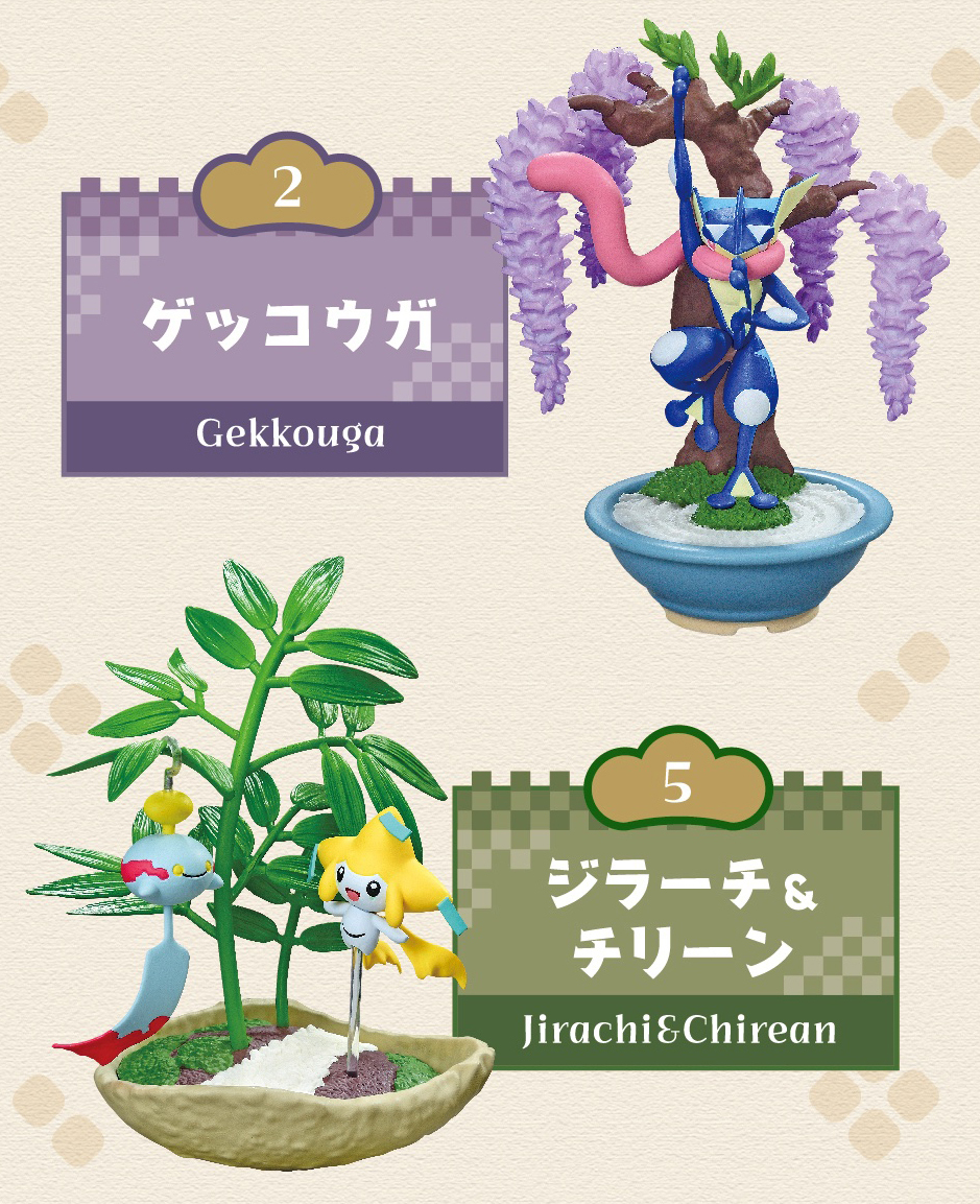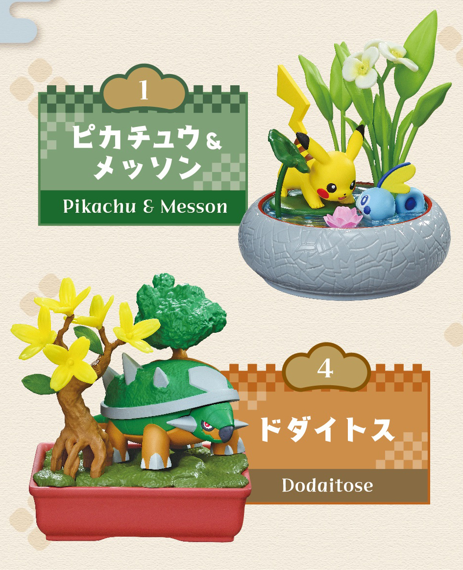 RE-MENT 發行的「口袋盆栽」是製作出各式各樣的植物與盆器組合,搭配上不同屬性的寶可夢們,打造出寶可夢沈浸在大自然之中的樣貌。而且不同於其它以野外場景為題的寶可夢盒玩,這種寶可夢盆景模型的形式更增添了一股唯美的和風感。