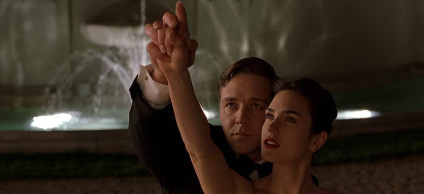 離題了,也許你可以說《美麗境界》的化妝讓羅素克洛,看起來很不像他,然而我在第一幕就已經對他的表演感到驚嘆了,所以我認為這不是一個問題,但是那妝容的確是非常的逼真,尤其是的他們老化的樣子:「這是同一個人嗎?」,又一個可惜,他們在化妝獎輸給《魔戒首部曲:魔戒現身The Lord of the Rings: The Fellowship of the Ring》,這點我無可反駁,這部電影真的是挑錯年份。