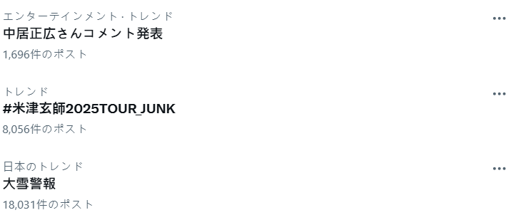 ▼ 關於中居正廣的發言也登上日本 X 趨勢關鍵字。