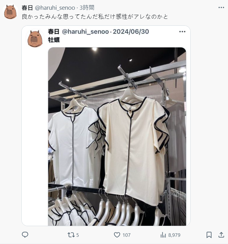 近日日本 X 上,有位推主分享了自己女友的愛好穿搭,就是這件「荷葉邊上衣」,雖然真的很可愛,他卻道出道出了一個奇妙比喻,讓網民看到都大爆笑,大讚這位男友的想像力。